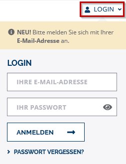 Klicken Sie im Kopfbereich des Shops auf Login, um sich anzumelden.