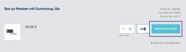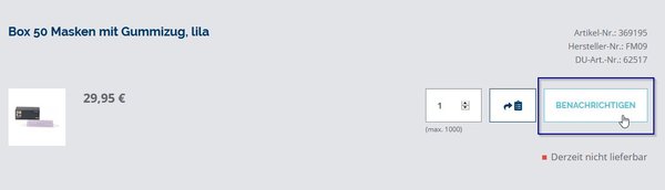 Ist ein Artikel vorübergehend nicht bestellbar bzw. nicht lieferbar hat dieser statt des Warenkorb-Buttons einen Button "Benachrichtigen".