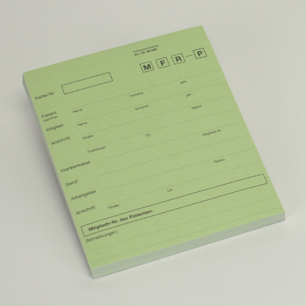 Anschriftenblatt A5 Kartei selbstklebend 142 x 115 mm grün, Block