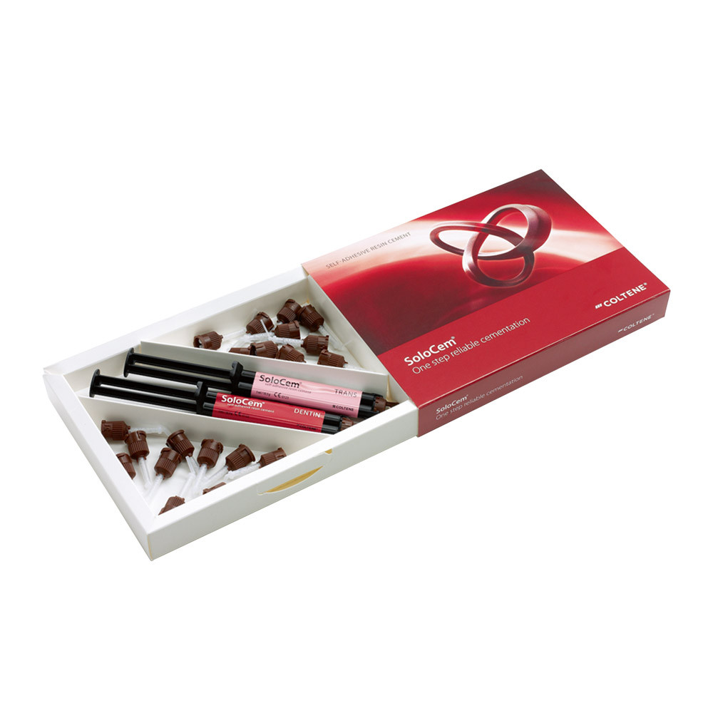 Selbstadhäsiver, dualhärtender, röntgenopaker Zement auf Kompositbasis für die Zementierung von Wurzelstiften, Kronen, Brücken, Inlays und Onlays. Der Zement ist in zwei Farben erhältlich, Dentin und White Opaque, was hervorragend für die Wurzelstift-Zementierung geeignet ist. Mit dem Solisten unter den selbstadhäsiven Zementen wird Zeit gespart, da das Material einfach und schnell aus der Automix-Spritze appliziert und kein Bonding benötigt wird. Auf Dentin, Enamel und verschiedenen anderen Materialien wird eine optimale Scherverbundfestigkeit erzielt. Zusätzlich beinhaltet SoloCem Zinkoxid, das für seine antimikrobiellen Eigenschaften bekannt ist.