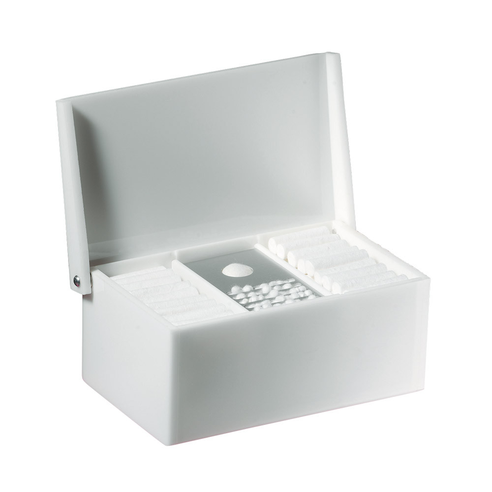 Wattecenter komplett mit Rundlocheinsatz für Watte und breiten Stegen für größere Wattepellets und -kügelchen.