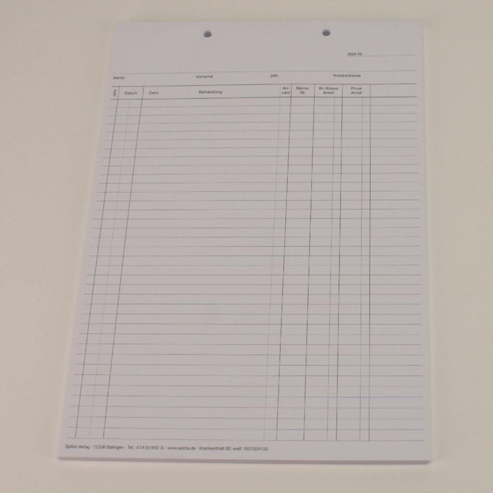 Krankenblatt B2 kopfgelocht rosa, 100 Stück