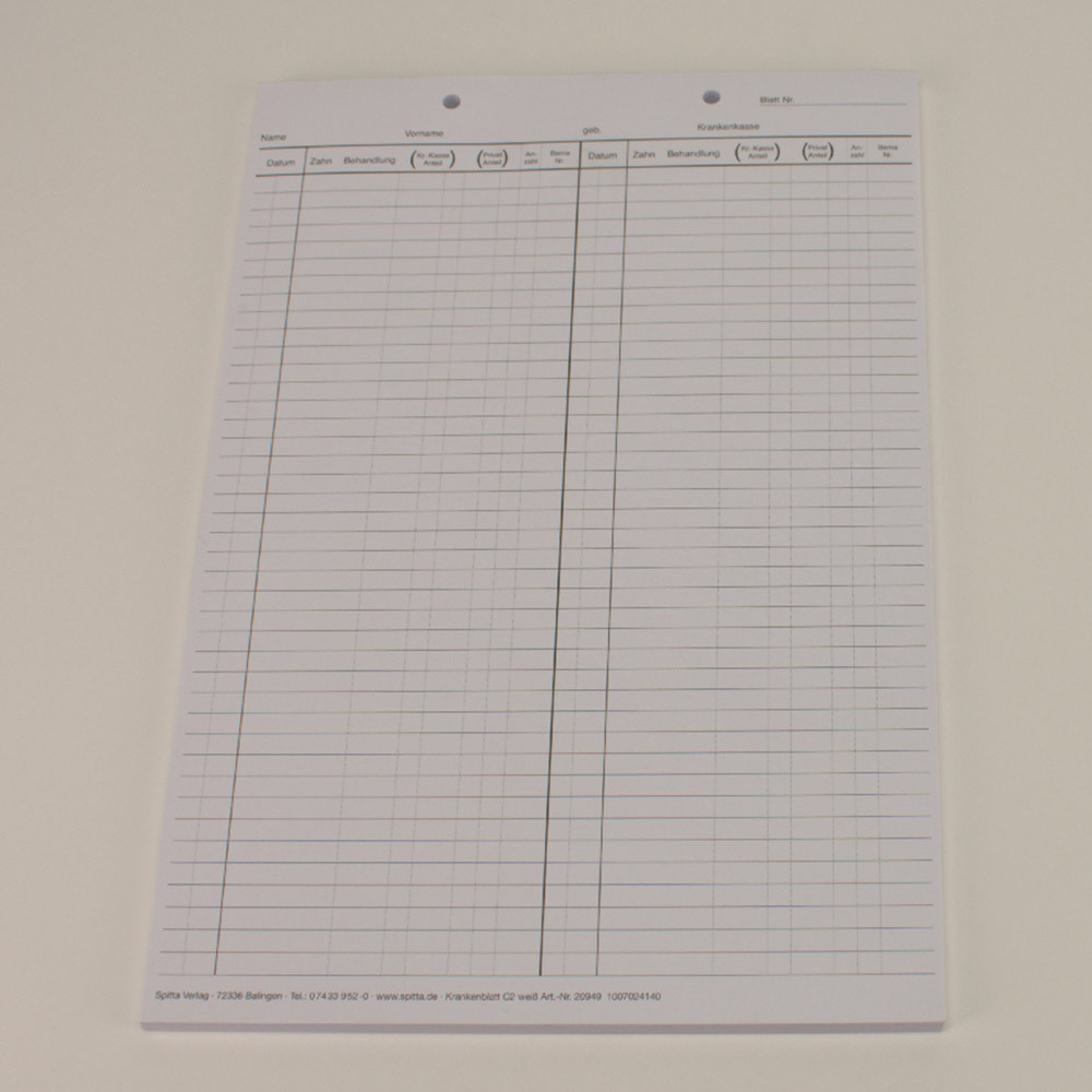Krankenblatt C2 kopfgelocht weiß, 100 Stück