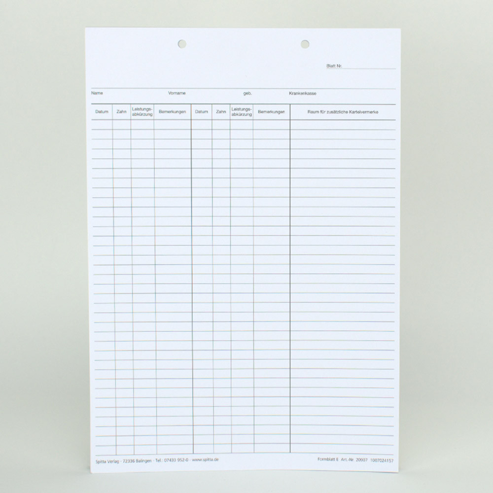 Krankenblatt E kopfgelocht weiß, 100 Stück