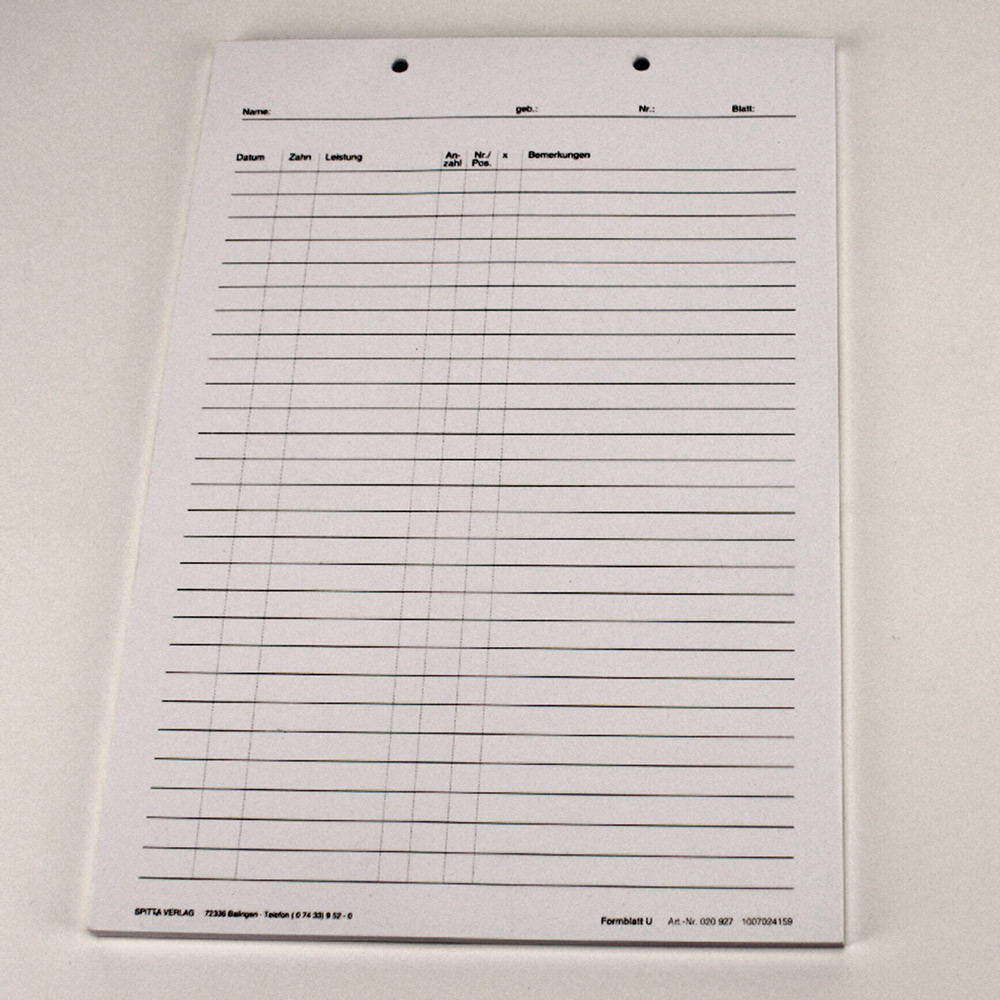 Krankenblatt U kopfgelocht weiß, 100 Stück
