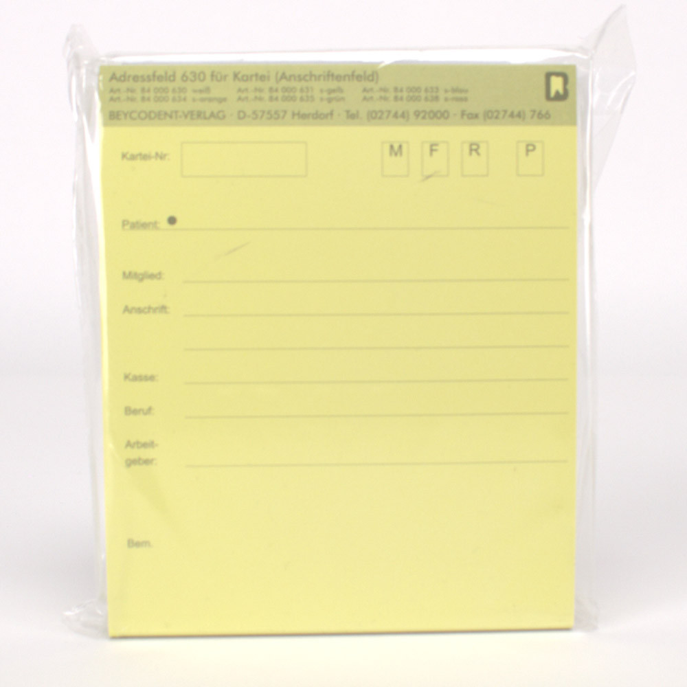 Adressfeld 630 für A5/SL Kartei + A4 Alpha 130 x 120 mm gelb, Packung