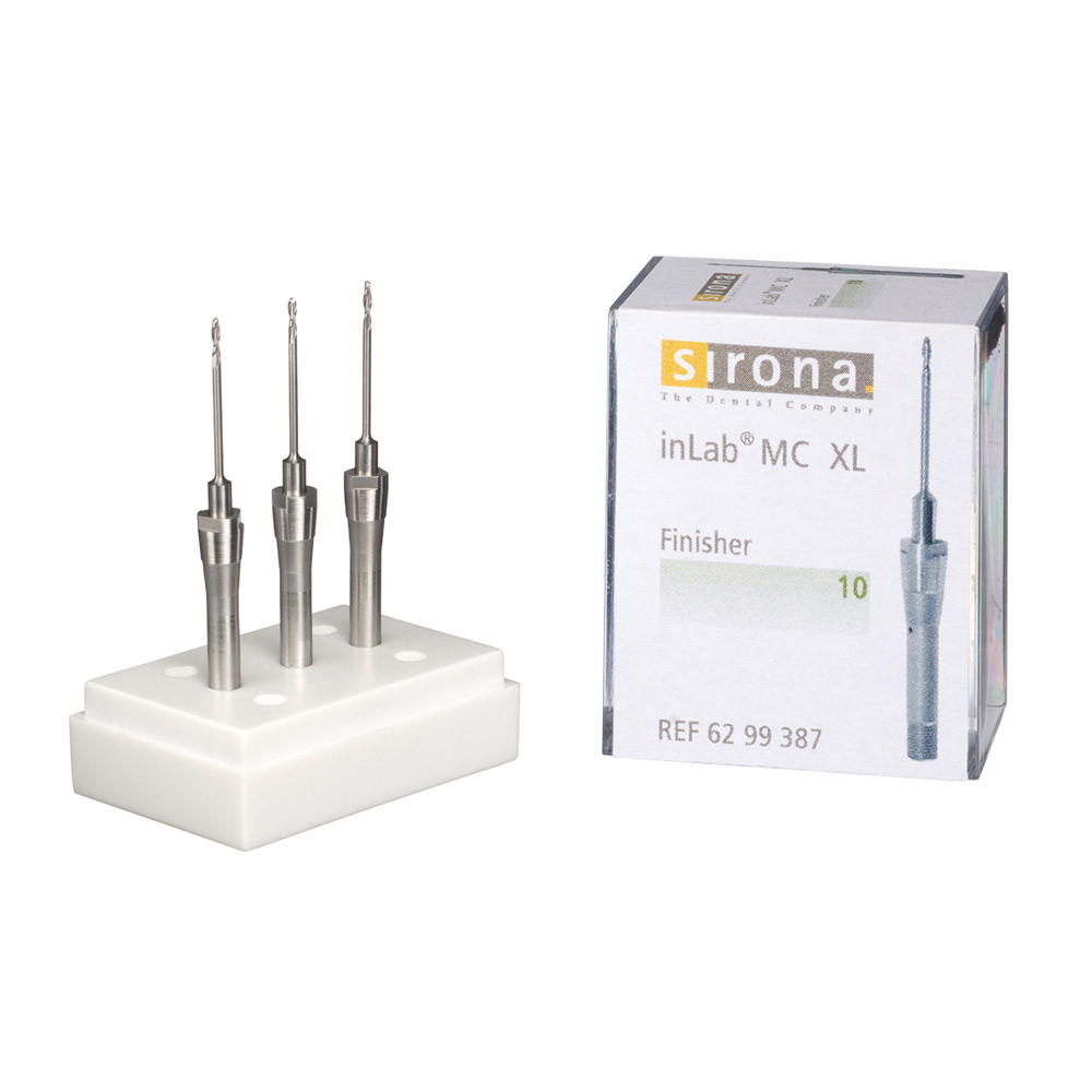 Zur Bearbeitung der Modellkunststoffblöcke. Die Kombination Shaper 25 (links) und Finisher 10 (rechts) wird für Trockenfräsen verwendet. Sie dürfen nur verwendet werden in CEREC MC XL mit Premium Paket Maschinen, inLab MC XL Maschinen ab der Seriennummer 120000 oder in den Maschinen,die durch Motoren-Upgrade-Kits umgerüstet werden. Für das Trockenfräsen von Zirkonoxid sind eine Trockenfräskonfiguration und eine CEREC-Absaugeinheit erforderlich.