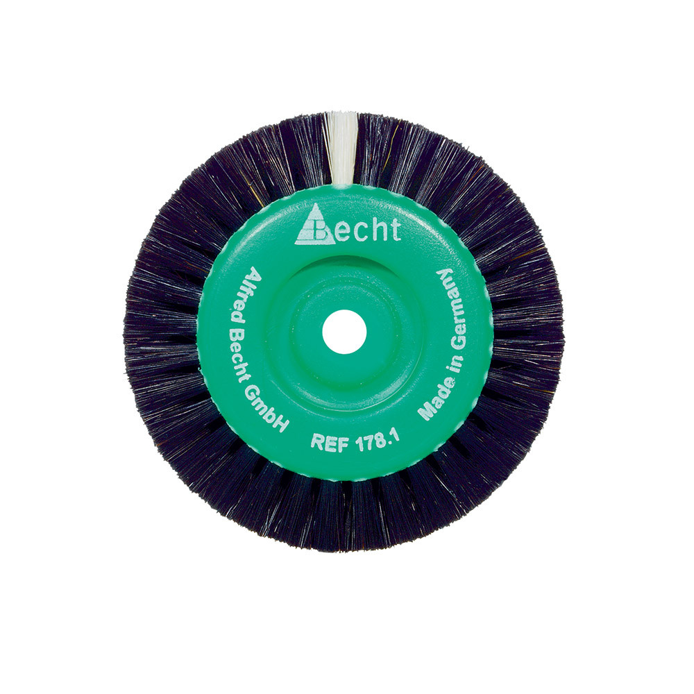 Der kurze, dichte Borstenbesatz verleiht diesen Bürsten die außergewöhnliche Steife und Härte, die für das rationelle Bearbeiten von Modellguss und Titan erforderlich ist. Empfohlene Umdrehungszahl: 2.800 U/min.