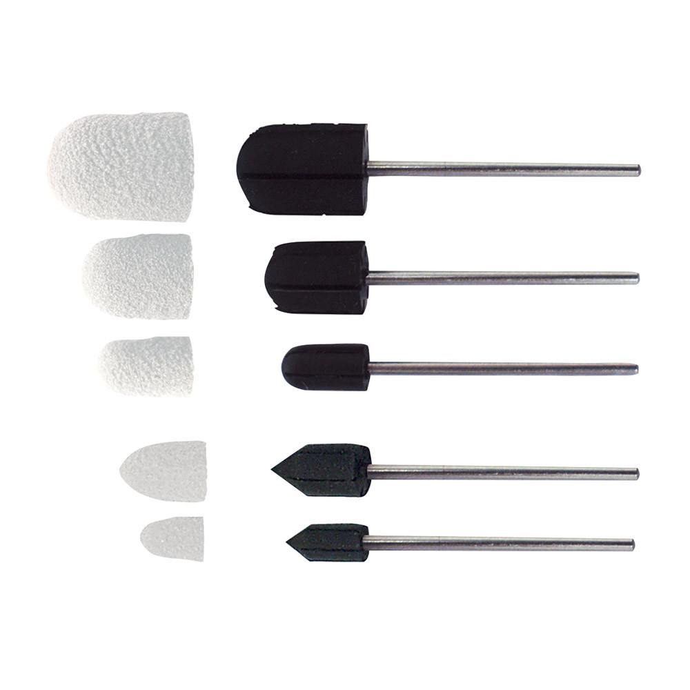 Rotierende Instrumente für die Bearbeitung aller weichbleibenden Dentalmaterialien. Ökonomisch durch austauschbare Korrundschleifkappen. Körnung 150 µm Anwendungsbereich: EVA-Tiefziehplatten für Sportmundschutz (z. B. Drufosoft), weichbleibendes Unterfütterungssilikon (z. B. MegaBase), Positioner-Silikon (z. B. Odontosil)