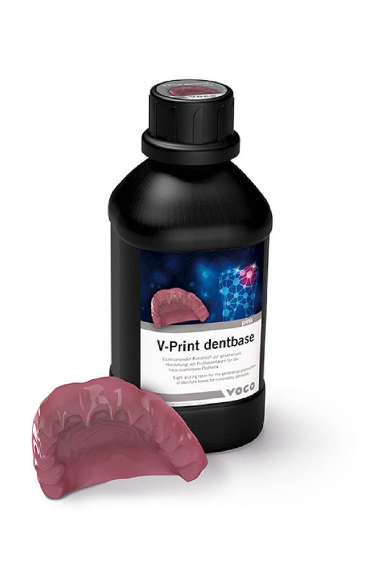 Lichthärtender Kunststoff zur generativen Herstellung von Prothesenbasen für die abnehmbare Prothetik.