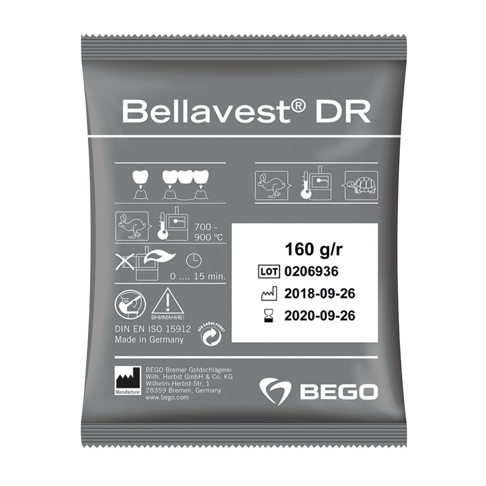 Bellavest DR ist eine staubreduzierte Shock-Heat oder konventionell aufheizbare Präzisionguss-Einbettmasse für die Kronen- und Brückentechnik. Besonders herauszustellen ist die nach DIN EN 15051-3 um ca. 80% verringerte Staubentwicklung, die für eine nennenswerte Reduzierung schädlicher Quarz- und Cristobalitstäube im Laboralltag sorgt. Die präzise Expansionssteuerung und feine cremige Konsistenz führen zu glatten Gussoberflächen und ermöglichen konstant reproduzierbare Passungsergebnisse. Bellavest DR härtet kantenfest aus und läßt sich trotzdem leicht ausbetten - dies bedeutet für den Anwender Zeitersparnis und ökonomische Nutzung von Strahlmittel.