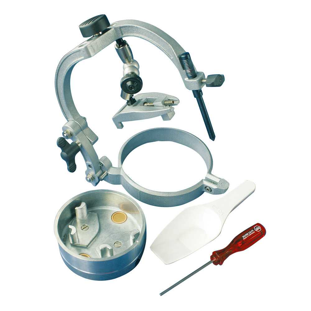 Ist ein Okkludiergerät, welches für die Einprägung des Gegenbisses in das Erkoform-3d integriert werden kann. • Das Occluform-3 kann nur an Erkoform-3/-3d Geräten installiert werden • Gipsfreie Modellfixierung • Hydraulische Fixierung des Gegenbisses • Mehr Platz für hohe Modelle • Einsäulige Konstruktion für beste Modellzugänglichkeit • Die Konstruktion basiert auf einem Bonwilldreieck mit der Schenkellänge von 11,5 cm und einem Balkwillwinkel von 20°.