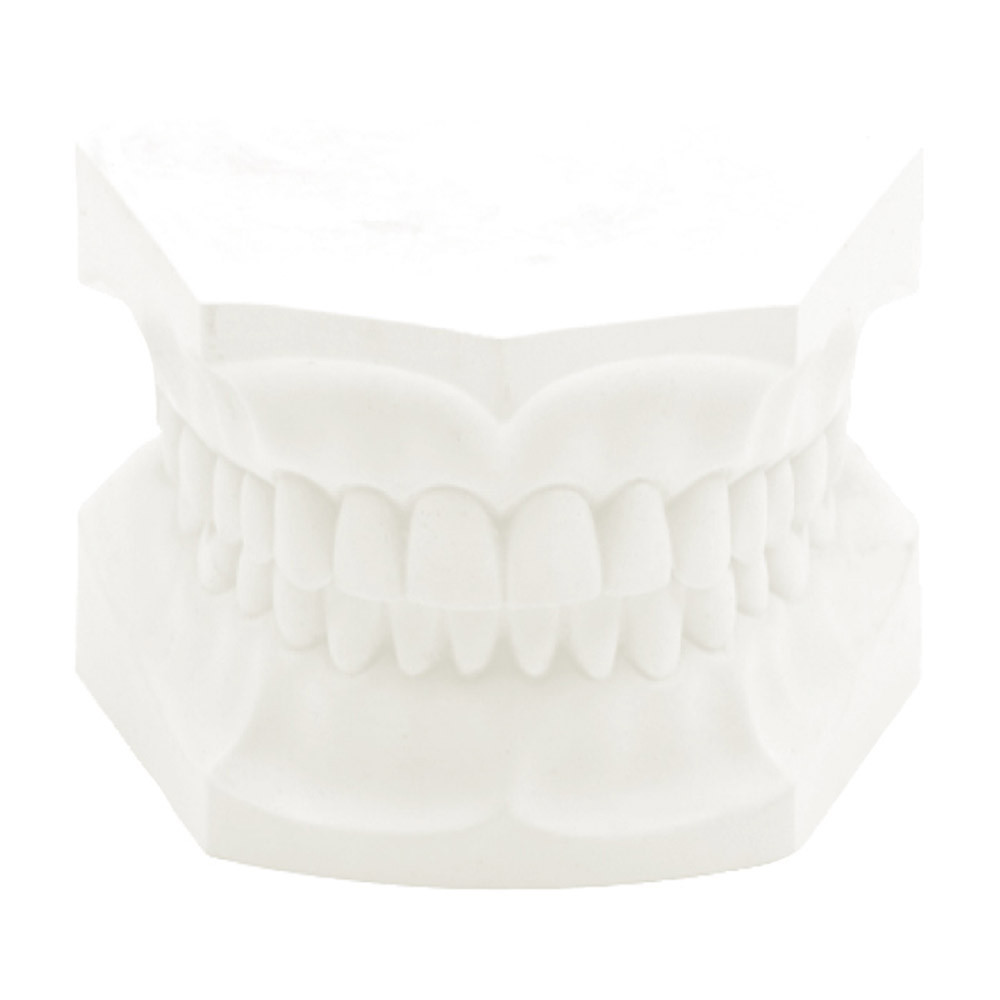 Leichtfließender Hartgips (Naturgips Klasse III) für orthodontische Modelle und Studienmodelle mit glänzender Oberfläche. Die Modelle können problemlos beschliffen und poliert werden.