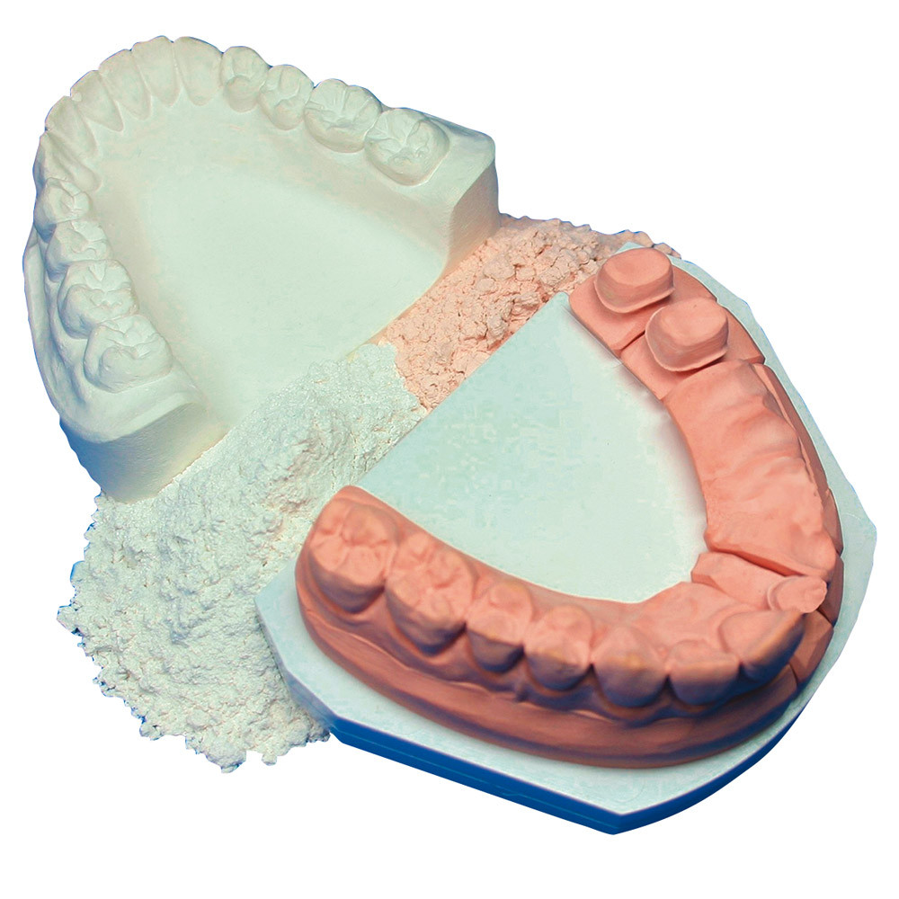 Superhartgips, Typ 4. Erreicht durch seine Zusammensetzung (Naturgips mit synthetischem Anteil) eine hohe Druckfestigkeit und niedrige Expansion. Die kantenstabilen Modelle zeichnen sich durch eine kratzfeste und glatte Oberfläche aus. Für Sägemodelle, Kontrollmodelle und Meistermodelle hervorragend geeignet.