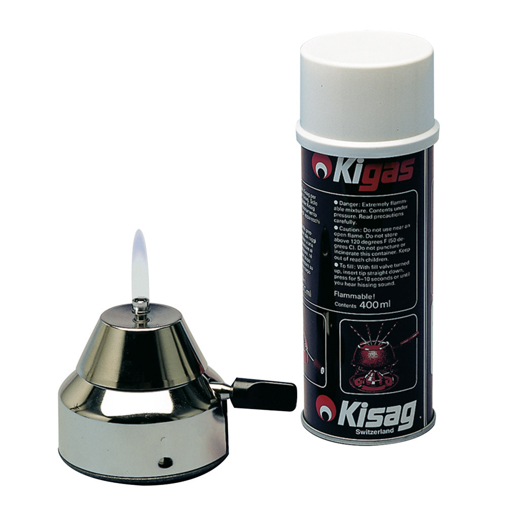 Gasbrenner für Praxis und Labor. Flammentemperatur stufenlos regelbar von ca. 750 - 1150°C. Eine Füllung für 5 - 6 h Brenndauer. Mit dem schweizer SVGW Zeichen (entspricht dem deutschen GS-Zeichen). Nachfüllbar nur mit Kisag-Gas.