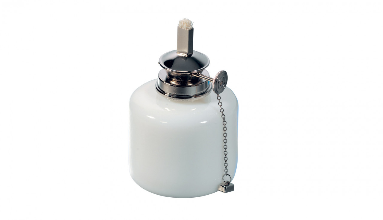 Spirituslampe aus Opalglas, komplett mit Schraubverschluss und regelbarem Docht, Fassungsvermögen ca. 100 ml.