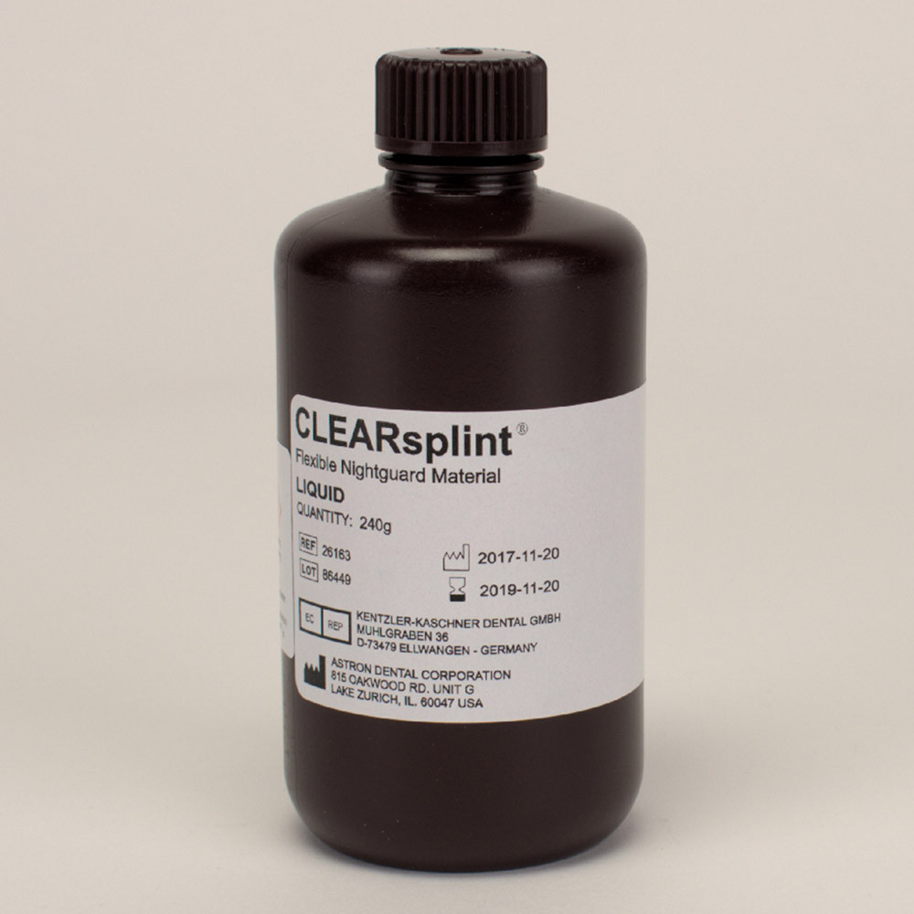 Premium-Aufbissschienenmaterial zur Herstellung funktionstherapeutischer Aufbissschienen. Die Vorteile: extrem bruchsicher, daher optimaler Schutz für den Zahnbestand. Thermoplastische Flexibilität für einen hohen, angenehmen und spannungsfreien Tragekomfort. Hyporallergen, MMA frei (Restmonomergehalt an MMA = 0). Selbstadjustierend mit Memoryeffekt. Dauerhaft transparent - kein Vergilben, da frei von Aminen. Die beste Lösung bei Indikationen wie Gelenkentlastung bei Bruxismus, Schutz von VMK- und Implantatversorgungen, Neuadjustierung des Bisses etc.