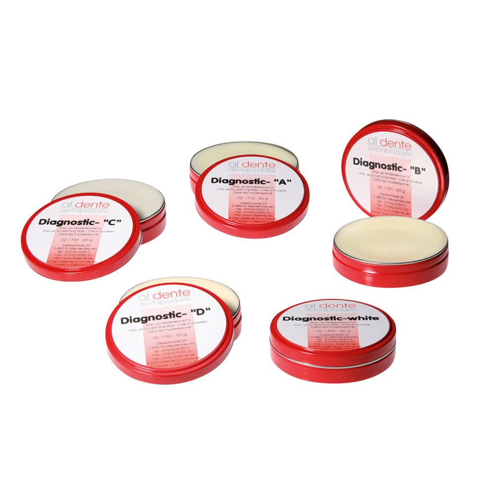 Das organische Diagnosticwax wurde den Vita Zahnfarben A - B - C - D angeglichen. Ideal für die Gestaltung von Wax-Ups und Vollkeramikmodellationen. Verbrennt vollkommen rückstandsfrei.
