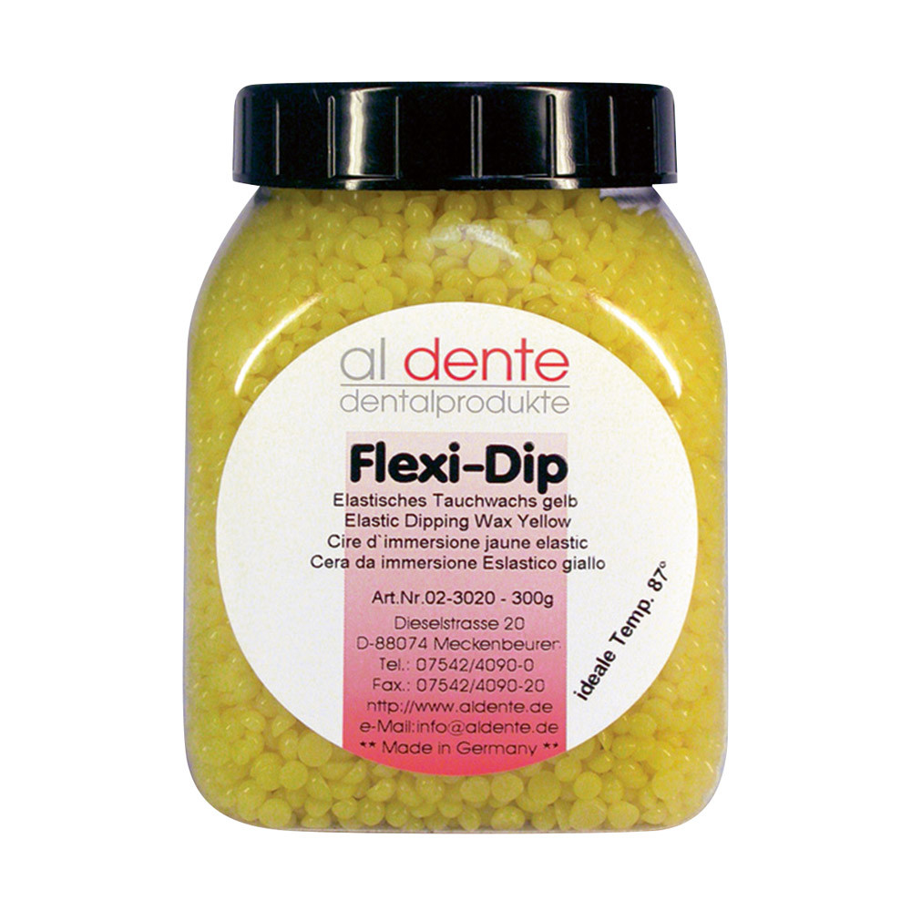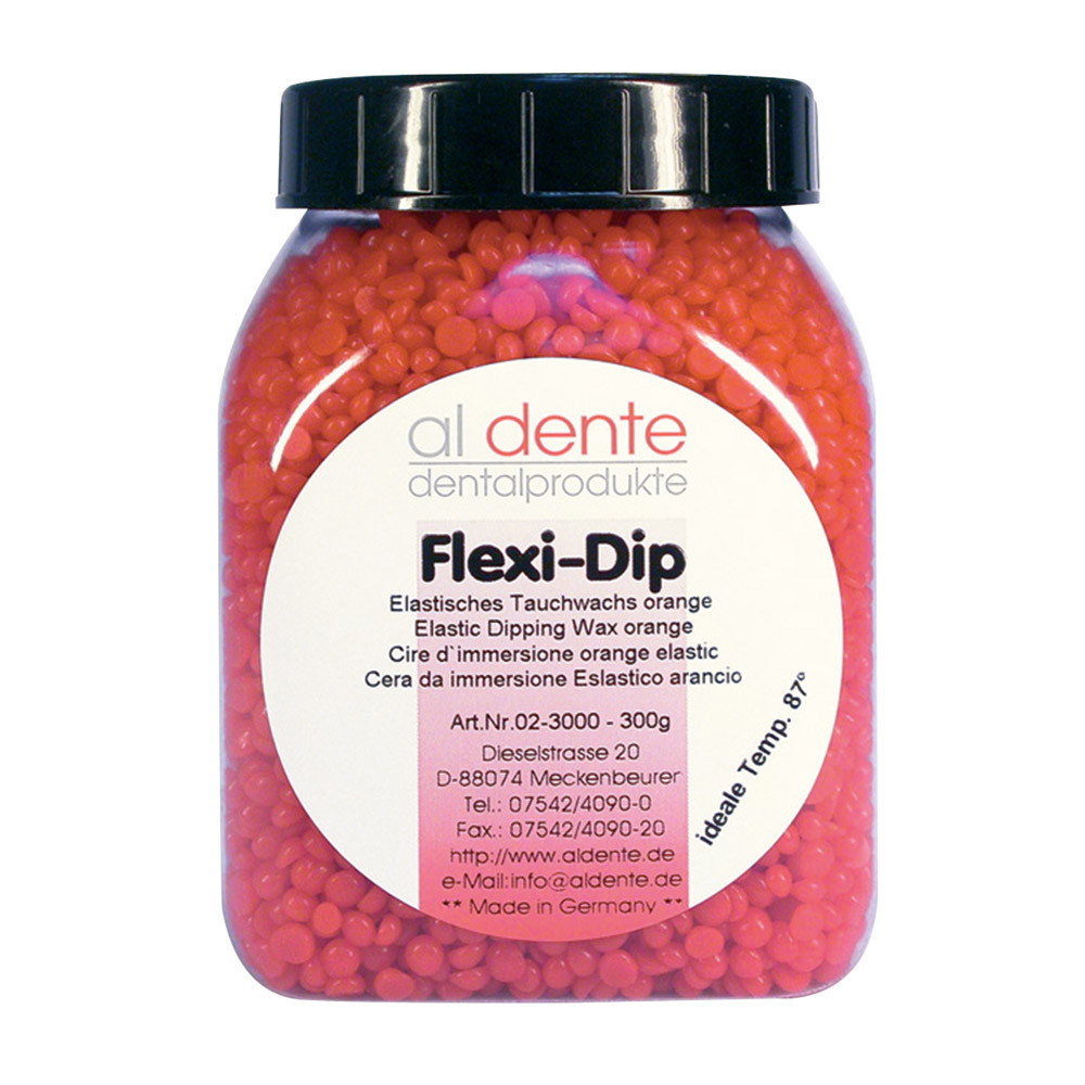 Flexi-Dip, das elastische Tauchwachs zum Erzielen paßgenauer Wachskäppchen mit hervorragenden Schab- und Schneideigenschaften. Die hohe Elastizität des Wachses schließt beim Abheben vom Stumpf eine bleibende Verformung des Käppchens aus. Dies gewährleistet ein leichtes Aufpassen und beste Passgenauigkeit der gegossenen Kronen. Das spezielle elastische Wachs gewährleistet physikalische Eigenschaften des Wachskäppchens annähernd dem eines tiefgezogenen Kunststoffkäppchens.