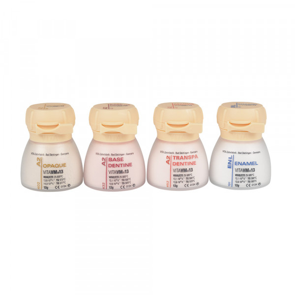 VITA VM® 13 wurde als spezielle Verblendkeramik mit Feinstruktur für alle gängigen Legierungen im WAK-Bereich 13,8-15,2 entwickelt. Wie alle VITA VM-Massen zeichnet sich auch VITA VM® 13 durch ihr schmelzähnliches Lichtbrechungs- und Reflexionsverhalten aus. Der Einsatz von fluoreszierenden und opaleszierenden Zusatzmassen erlaubt äußerst individuelle und ästhetisch anspruchsvolle Ergebnisse.