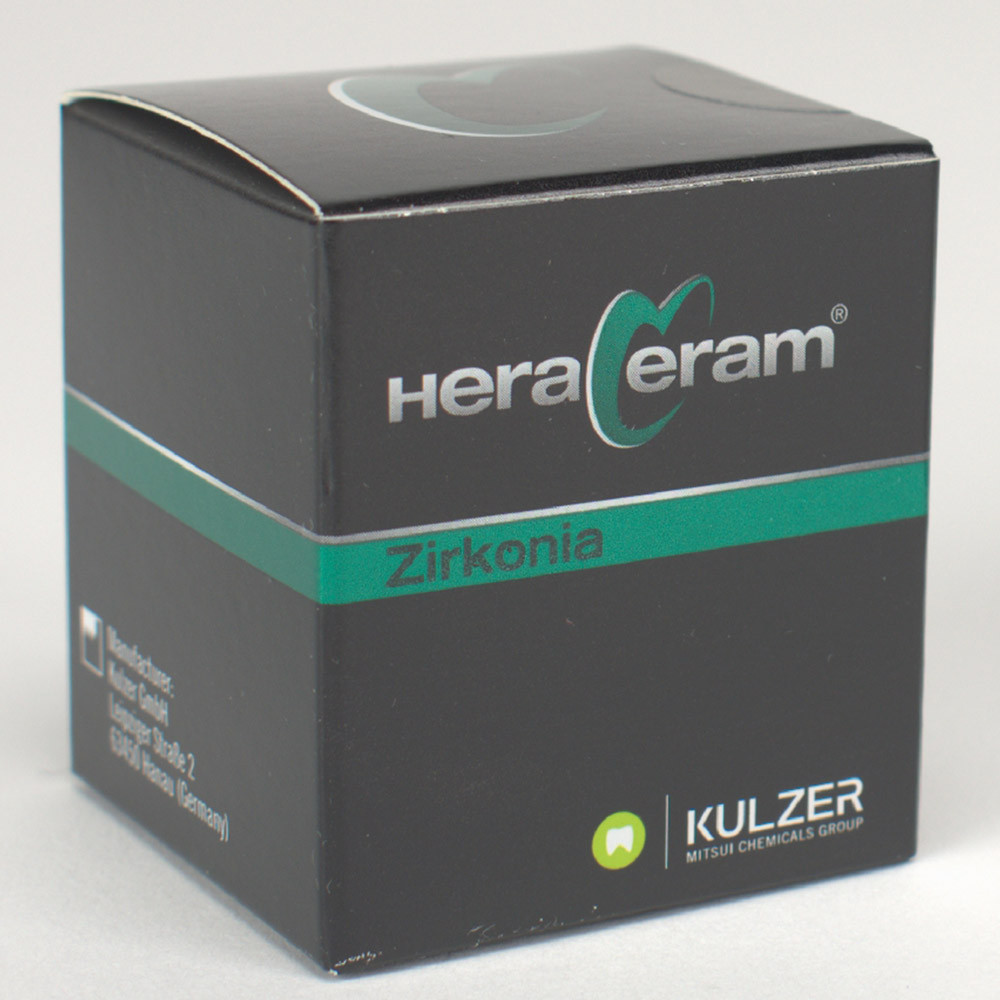 HeraCeram® Zirkonia ist optimal auf den Gerüstwerkstoff Zirkonoxid und dessen WAK 10,5 µm/mK abgestimmt und hat einen Chipping-Schutz. Speziell für die Zirkonoxidverblendung wurde das pastenförmige HeraCeram® Zirkonia Adhesive entwickelt. Es sichert den maximalen Haftverbund der Verblendkeramik zum Zirkonoxidgerüst ohne riskantes Abstrahlen der empfindlichen Zirkonoxidoberfläche. Der Adhäsiv-Brand optimiert die Benetzung der Gerüstoberfläche, reinigt das Gerüst und fluoresziert es - für ein vitales Leuchten aus der Tiefe.