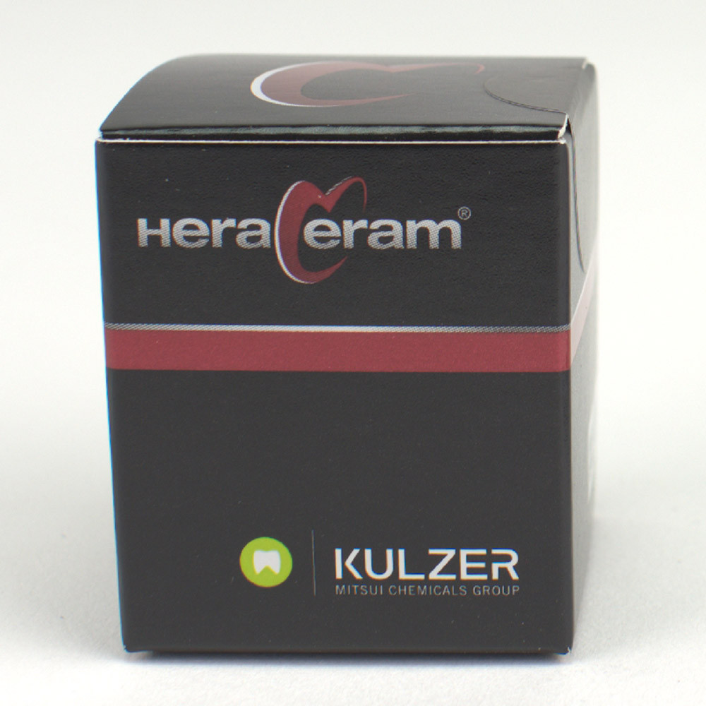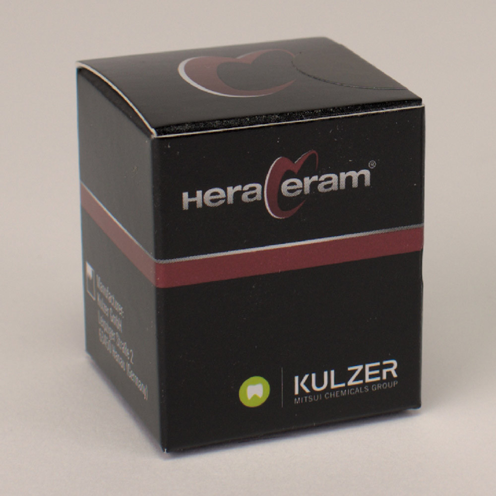 Hochschmelzende Verblendkeramik für Aufbrennlegierungen in einem WAK-Bereich von 13,5 - 14,9 my/mK. Aufgrund der niedrigen Brenntemperaturen von maximal 880° C können alle Legierungen in diesem WAK-Bereich sicher verarbeitet werden. Zur ästhetischen Gestaltung bietet HeraCeram neben optimal aufeinander abgestimmten Opaker, Dentin- und Schneidemassen ein umfassendes Sortiment an Individualmassen. Sie erzielen auch bei geringen Schichtstärken zuverlässige Farbergebnisse. Die Standfestigkeit der Massen und der geringe Brennschrumpf sorgen für eine hohe Formstabilität der Verblendung. Mit einer dichten, extrem glatten Oberfläche schützt HeraCeram den Antagonisten und sorgt für hohe Plaqueresistenz und Gingivafreundlichkeit.