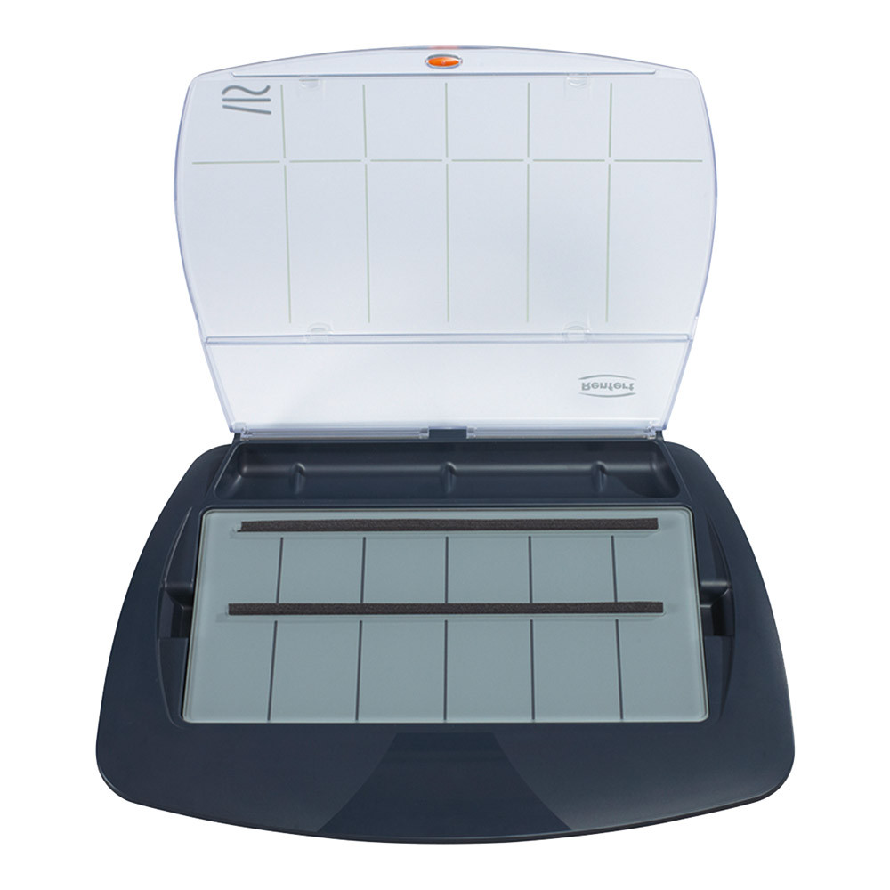 Moderne Glasplatte mit Befeuchtungsfunktion. Die extrem glatte, gehärtete Oberfläche schont Ihre Pinsel und ist abrasionsfest. Nutzen Sie die präzise Befeuchtungskontrolle an den zwei Schwammstreifen. Die Befeuchtungsstreifen sind optimiert auf gleichmäßige Kapillarwirkung sowie gegen Schimmelbildung und bieten Ihnen gleichzeitig einen komfortablen Gegendruck bei der Bearbeitung Ihrer Keramikmassen. Kein Materialverlust durch Austrocknung der Massen - reduzieren Sie gezielt Ihre Kosten.