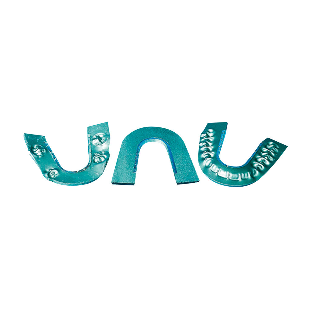 Vorgeformte Bissplatten aus Aluminiumwachs. Mit Metallverstärkungseinlage. Individuell für jeden Biss formbar, ausgekühlt extrem hart und formbeständig.