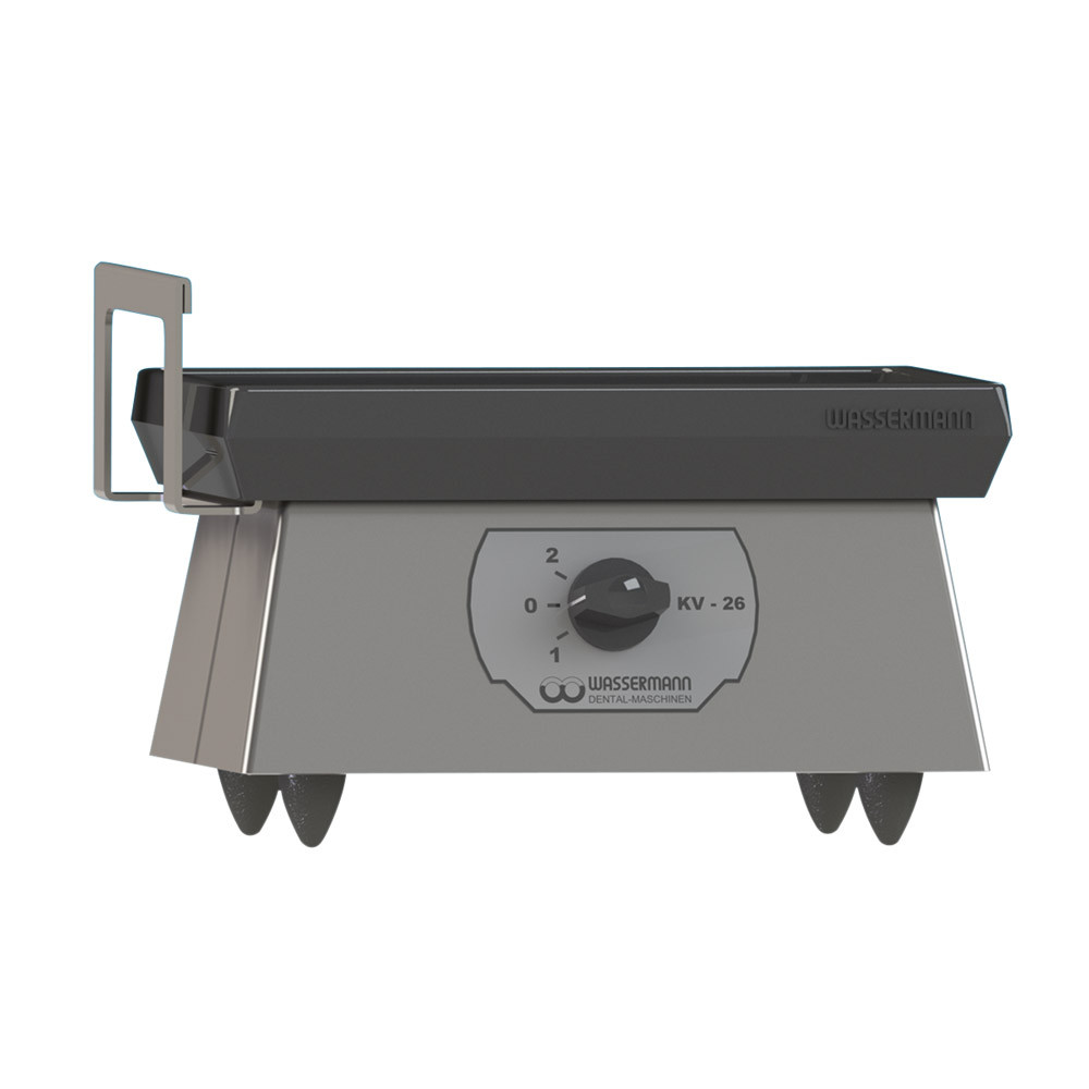 Kompakter, leistungsstarker Vibrator für 2 Küvetten. Gute Standfestigkeit durch vibrationsdämpfenden Gummifüße. • Extrem widerstandsfähiges Gehäuse aus Edelstahl • Linksseitig mit Bügel zum Ausgießen von Abdrücken • Versenkte Schalterblende, geschützt vor Feuchtigkeit und Verschmutzung