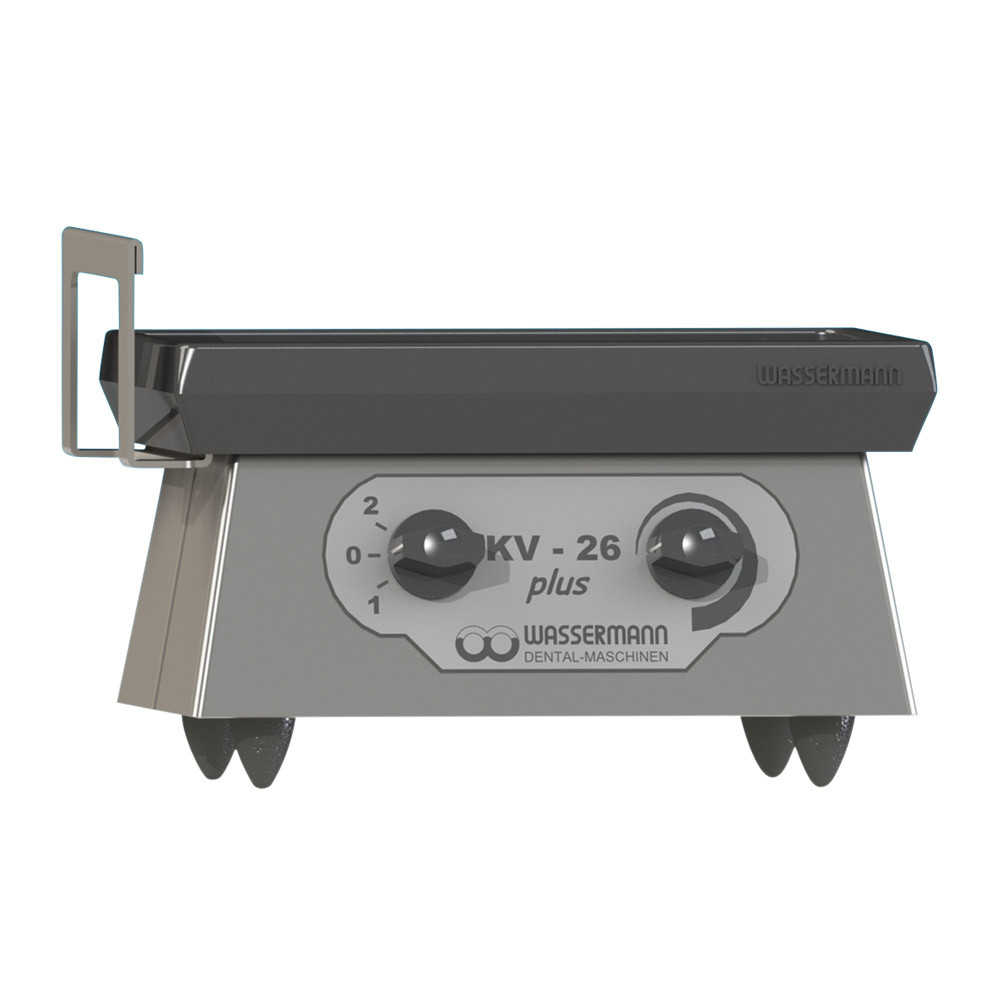 Leistungsstarker Vibrator für 2 Küvetten. Schwingungsintensität stufenlos regelbar und geringe Vibrationsübertragung durch schwingungsdämpfende Gummifüße. • Extrem widerstandsfähiges Gehäuse aus Edelstahl • Linksseitig mit Bügel zum Ausgießen von Abdrücken • Versenkte Schalterblende, geschützt vor Feuchtigkeit und Verschmutzung