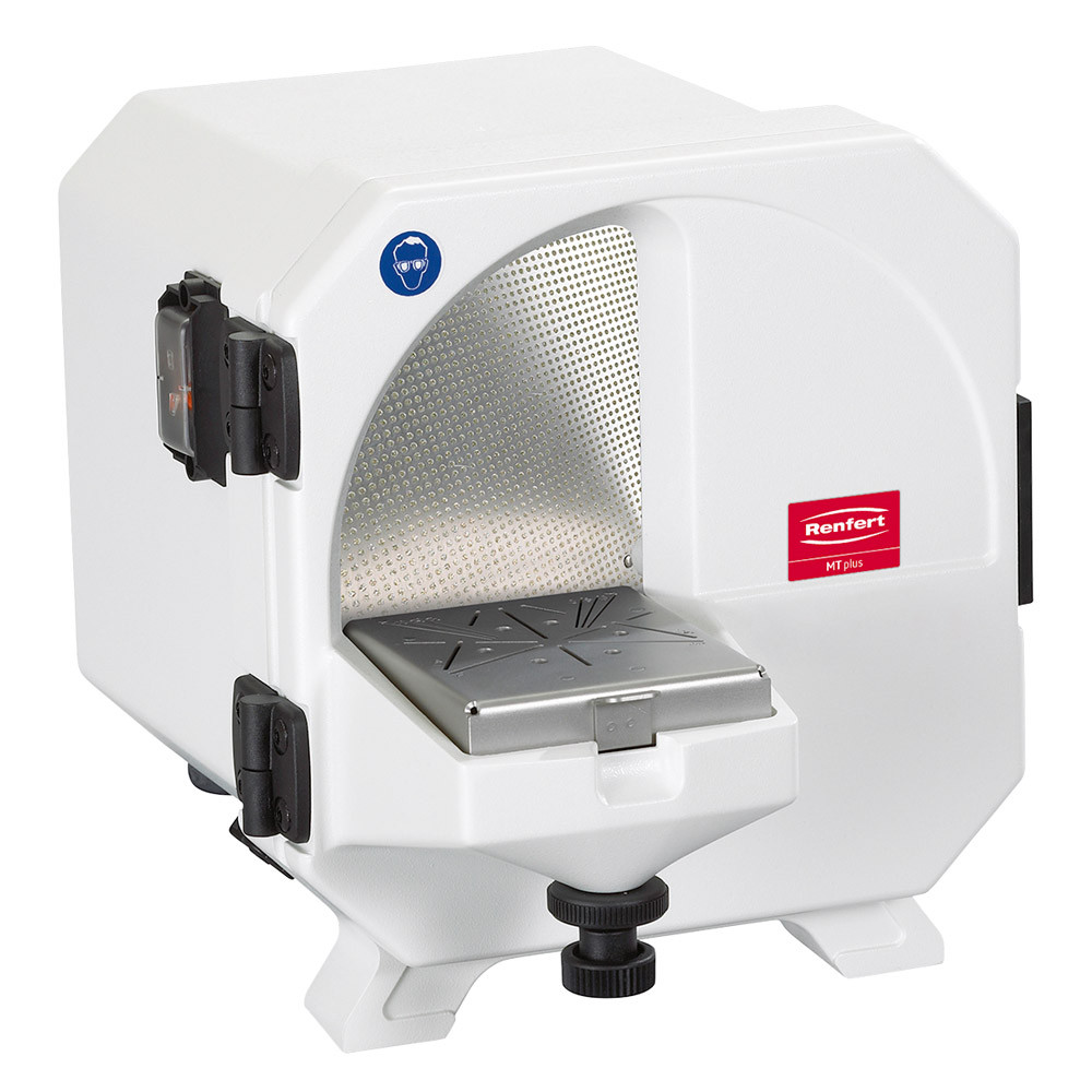 Der MT plus ist ein kompakter und sehr leistungsstarker Modelltrimmer, der im Nass- oder Trockenbereich eingesetzt werden kann. Mit dem durchzugsstarken Motor wird auch der härteste Gips spielend abgetragen. Der neue Gehäusewerkstoff ist geräuschdämmend, leicht und resistent. Beim Öffnen der Fronttür wird der Motor und die Wasserzufuhr gestoppt. Durch die leichte Schräglage wird eine ergonomische Arbeitshaltung erreicht.
