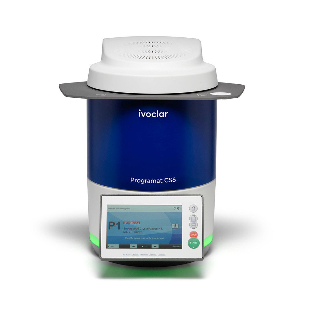 Der Programat CS6 ist ein Kombiofen zum schnellen Sintern, Kristallisieren und Glasieren. Durch die innovative Technologie der Brennkammer können Restaurationen aus Blöcken bis zu Größe B55 in kürzester Zeit verarbeitet werden. Das neue Öffnungsprinzip optimiert und beschleunigt den Vortrocknungsprozess, indem die warme Luft aus der Brennkammer aufsteigt und die Restauration von unten trocknet. Die kompakte Brennkammer und das neue Öffnungsprinzip reduzieren die Programmlaufzeiten für Ivoclar Materialien wesentlich,  um die Prozesszeit in der Zahnarztpraxis auf ein Minimum zu reduzieren. Durch das Vakuum beim Sinterprozess, welches einzigartig in der Dentalwelt ist, können die Programmlaufzeiten der IPS e.max ZirCAD Materialien deutlich verkürzt werden. Gleichzeitig kann die Ästhetik der Restauration im Vergleich zu anderen Chairside-Öfen erheblich erhöht werden. Neben den vorinstallierten Programmen für Ivoclar Materialien können auch Programme für Fremdmaterialien ganz einfach selbständig erstellt werden.