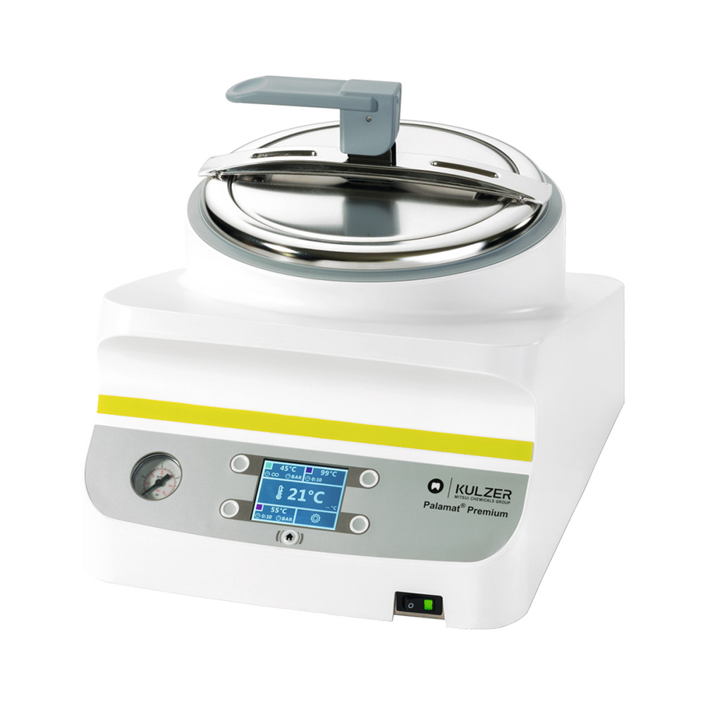 Das Wasserbad-Polymerisationsgerät – für jeden Anwender. Palamat Premium bietet ein neues, platzsparendes Design und zugleich ein größeres Inneres – genau an den Stellen, auf die es ankommt. Das Gerät verfügt über eine größere Öffnung als das Vorgängermodell und bietet zudem eine höhere Kapazität, sodass selbst große Artikulatoren darin Platz finden. Intuitive Bedienung über voreingestellte oder frei einstellbare Programme für alle Arten von Heiß- und Kaltpolymerisaten.