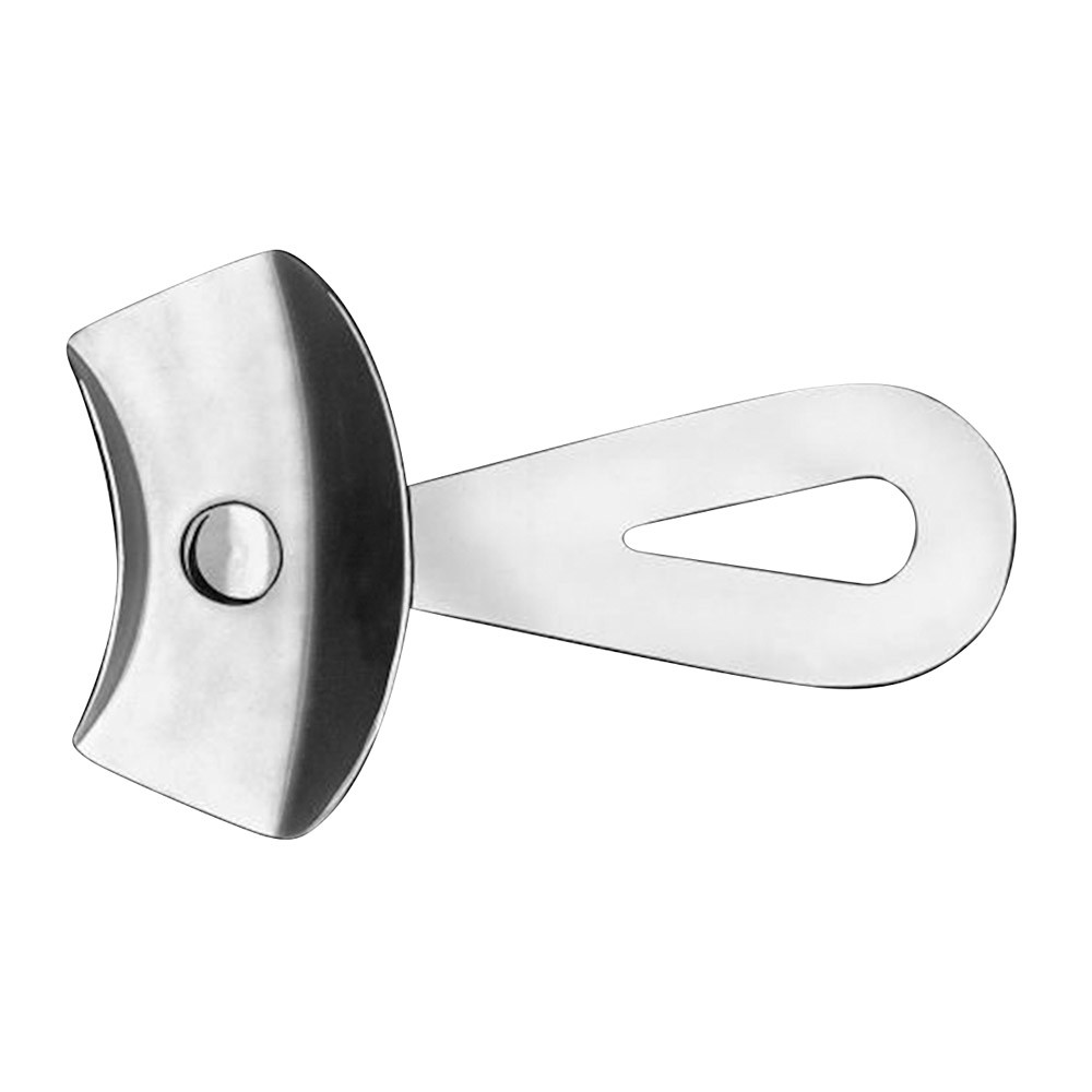 Ungelochter, rostfreier Abdrucklöffel für partielle Abdrücke. Drehbarer Griff und Stellschraube