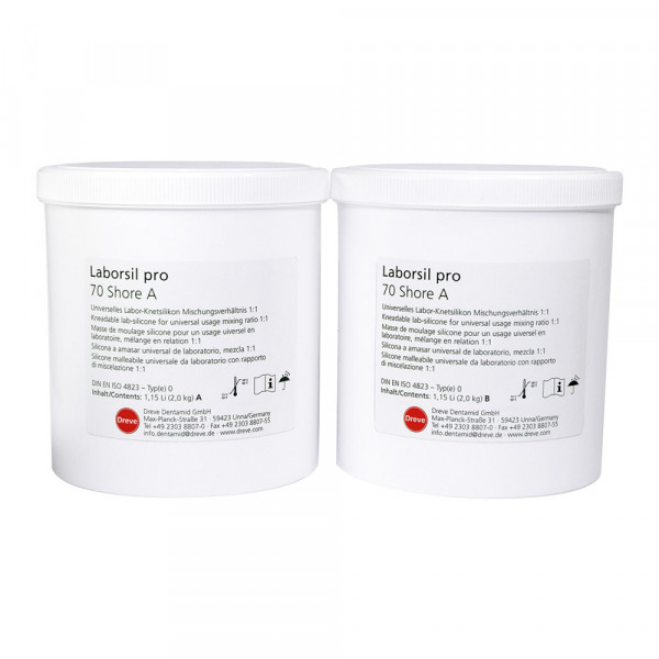 Knetbares Laborputty aus additionsvernetzendem Silikon mit einer Endhärte von 70 Shore A. Einfach und sauber im Verhältnis 1:1 anmischbar. Hochpräzise Abformung und exakte Detailwiedergabe zum Anfertigen von Vorwällen, Einbett- und Isoliermaterial für Kunststoffzähne bei der Küvettentechnik und Kontrollschlüsssel.