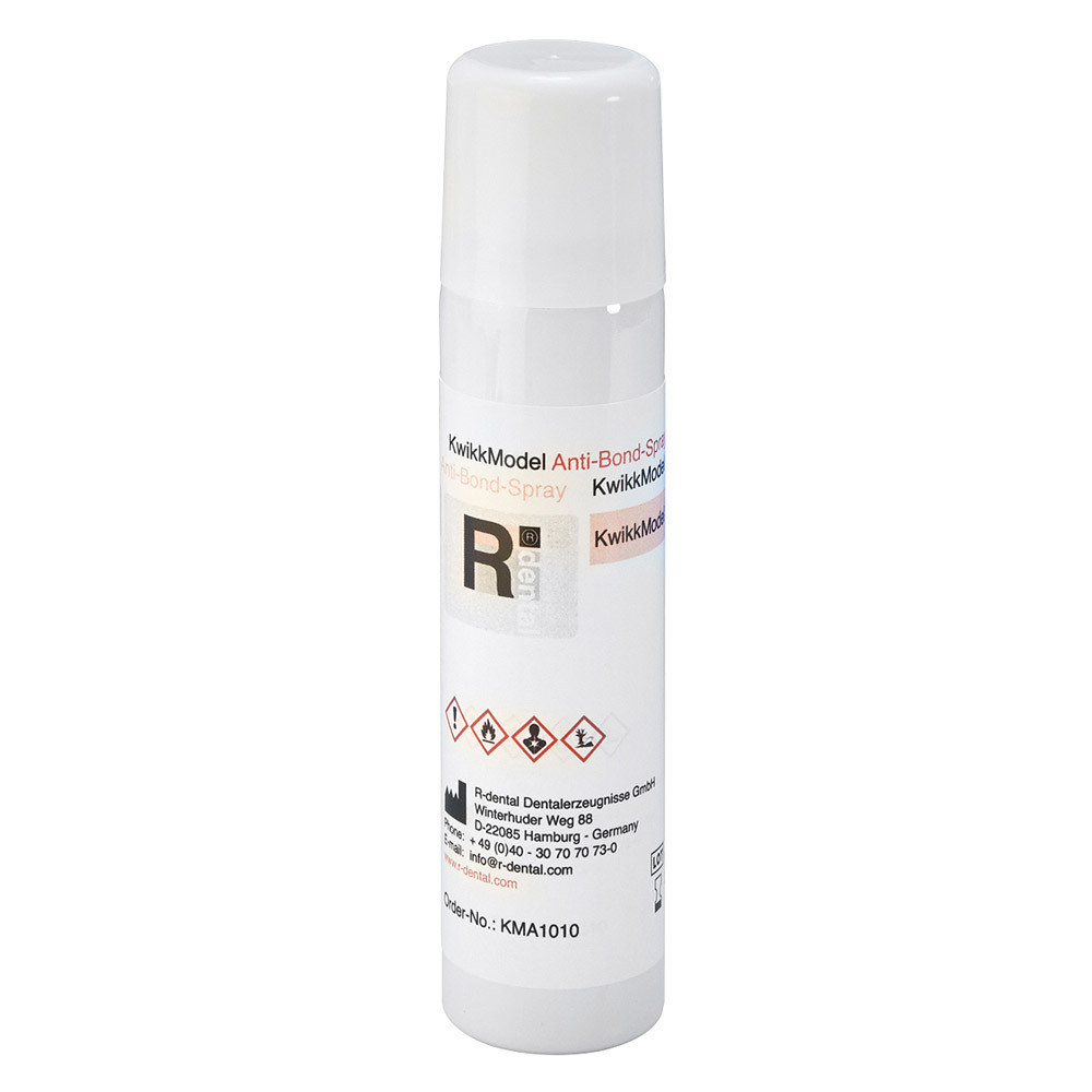 Trenn- und Isolationsspray, um vorgelegte Abformungen aus unterschiedlichen Materialien mit den A-Silikonen KwikkModel fluid und KwikkModel base (KwikkModel nature) oder KwikkModel SCAN ausgießen zu können, um dann Modelle von Kavitäten und Zähnen herzustellen, KwikkModel ABS verhindert eine chemische Reaktion des Materials der Abformung mit KwikkModel- oder Zahnfleischmasken-A-Silikonen im Dentallabor, reicht für ca. 150 Anwendungen.