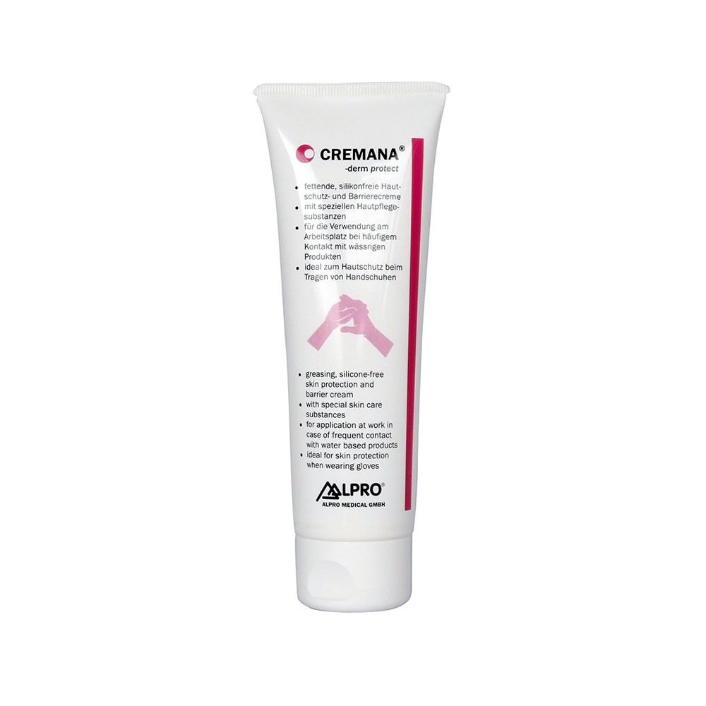 Fettende, silikonfreie Hautschutz- und Barrierecreme für die Verwendung am Arbeitsplatz bei häufigem Kontakt mit wässrigen Produkten, wie z.B. Reinigungs- und Desinfektionsmitteln. Ideal zum Hautschutz beim Tragen von Handschuhen.