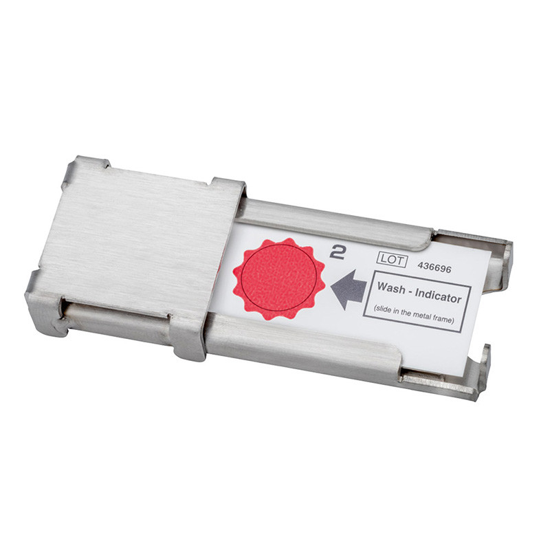 Prüfleiste: Mehrfach verwendbare Edelstahlprüfleiste zur Aufnahme der Wash Test Indikatorstreifen und Platzierung im Thermodesinfektor.