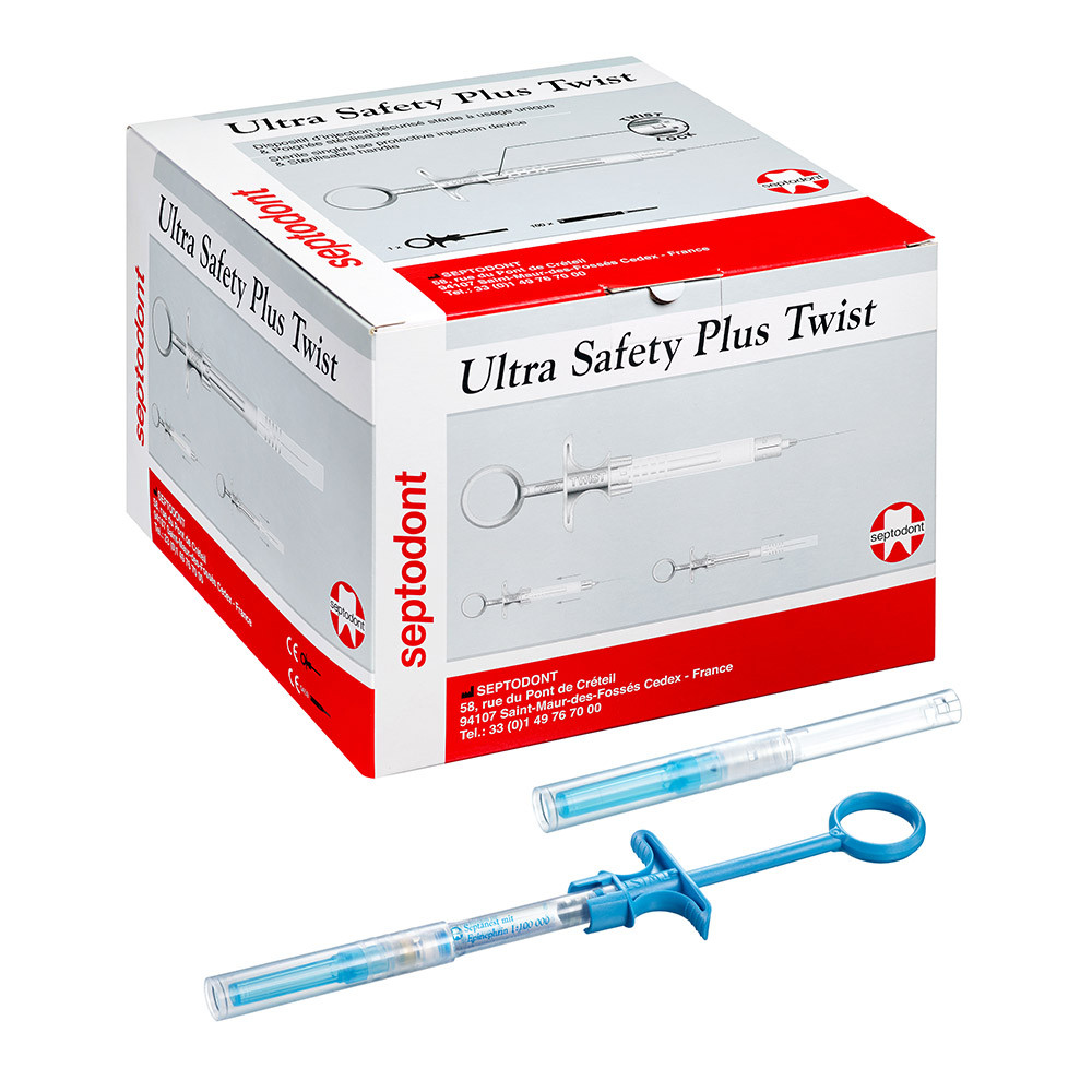 Injektionssystem mit Schutzvorrichtung gegen Nadelstichverletzungen. Zur routinemäßigen Verabreichung von zahnärztlichen Lokalanästhetika.