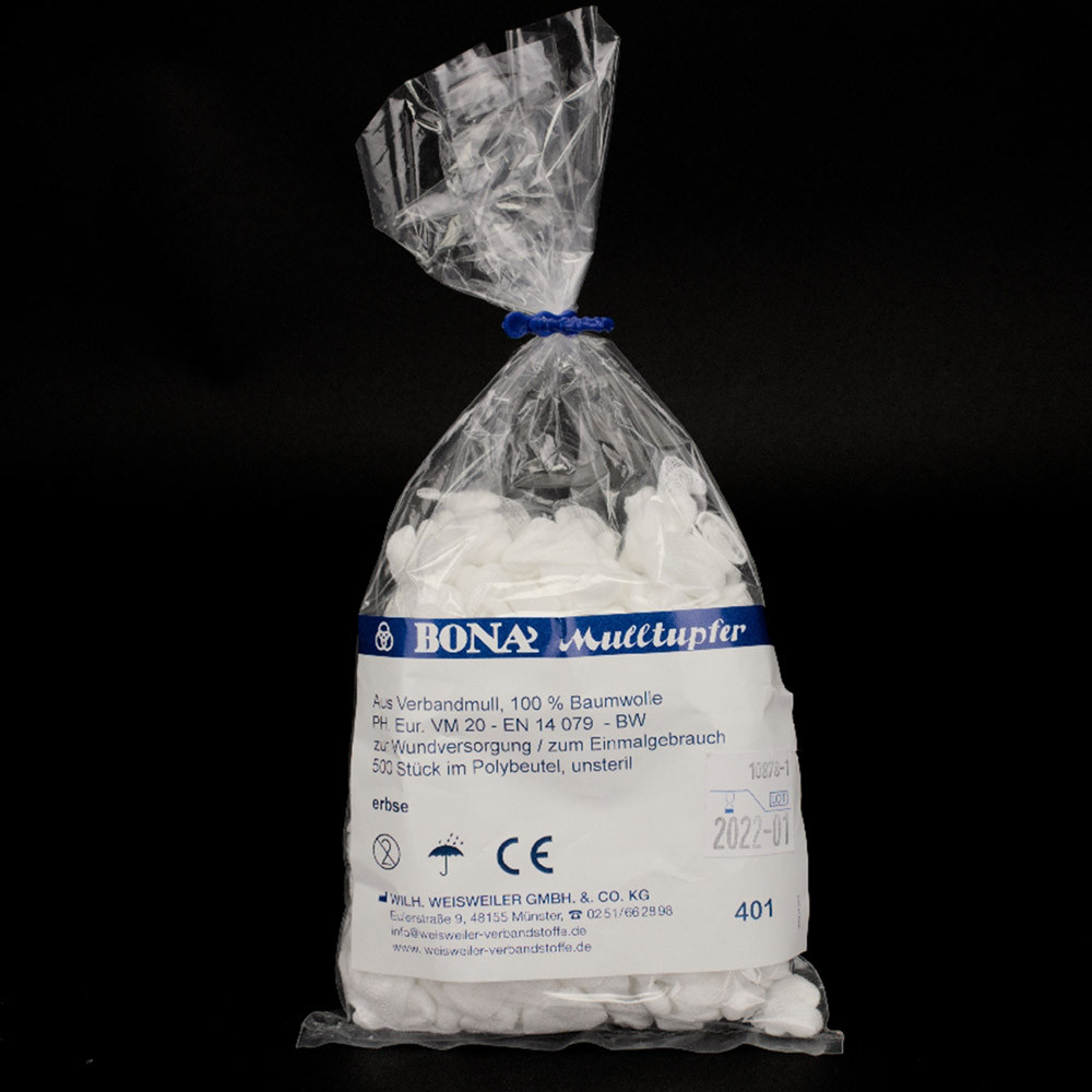 Bona Mulltupfer unsteril Erbse 401, 500 Stück