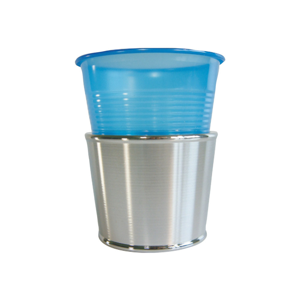 Massiver Becherbeschwerungsring für Einwegbecher aus Edelstahl. Als Becherhalter stabilisiert er die gefüllten Einweg-Mundspülbecher für ein sicheres Greifen. Aus rostfreiem Edelstahl mit fein geschliffener Oberfläche gefertigt. Desinfizierbar, sterilisierbar, autoklavierbar. Ca. 200 g schwer.