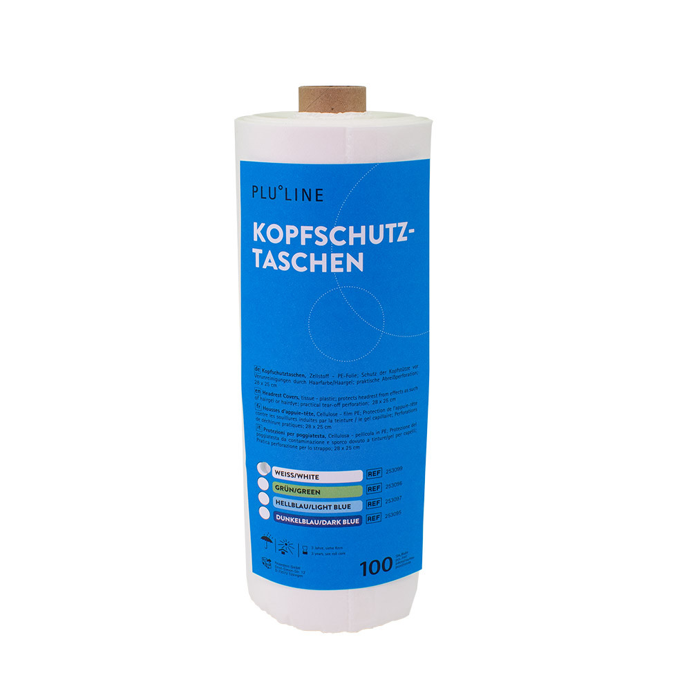 Pluline Kopfschutztaschen aus Zellstoff - PE-Folie mit praktischer Abreißperforation. Schützt die Kopfstütze vor Verunreinigungen.