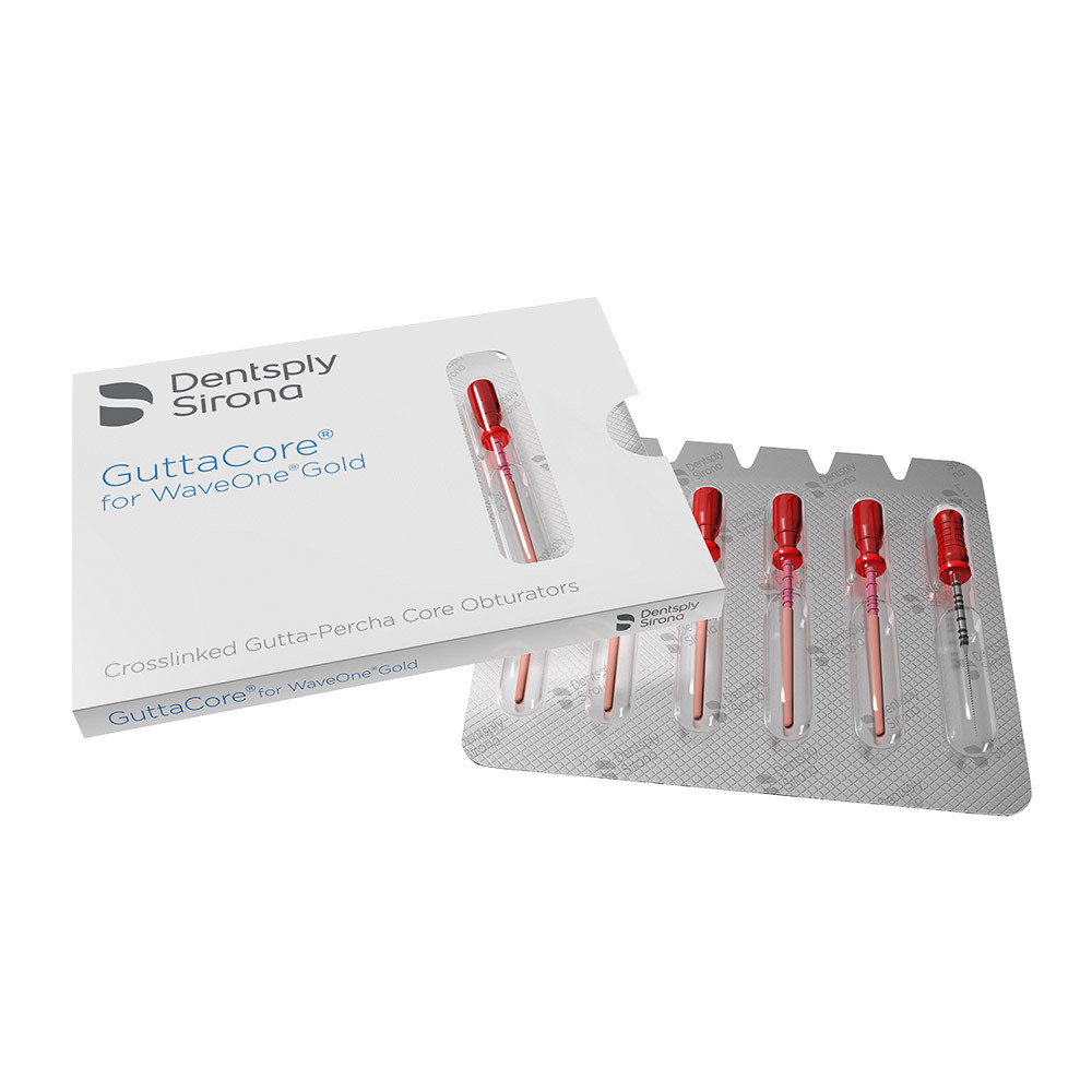 So einfach wie ein kalter Guttaperchastift, so sicher wie eine warme Füllung. Bei GuttaCore Obturatoren ist ein Kern aus vernetzter Guttapercha ummantelt mit thermoplastischer, fließfähiger Guttapercha, die die natürliche Kanalanatomie dreidimensional ausfüllt. Die Vorteile: • Effiziente und einfache Technik mit nur einem Obturator verkürzt die Behandlung. • Fließfähigkeit erwärmter Guttapercha zur Erreichung einer vollständigen Füllung des Kanalsystems. • Die Sicherheit zu wissen, dass GuttaCore verlässlich Bereiche füllt, die konventionelle kalte Guttapercha nicht erreicht. Jetzt erhältlich passend zu Ihrer Aufbereitung mit WaveOne Gold. Einfache Zuordnung des passenden Obturators durch Farbcodierung analog der Feilen.