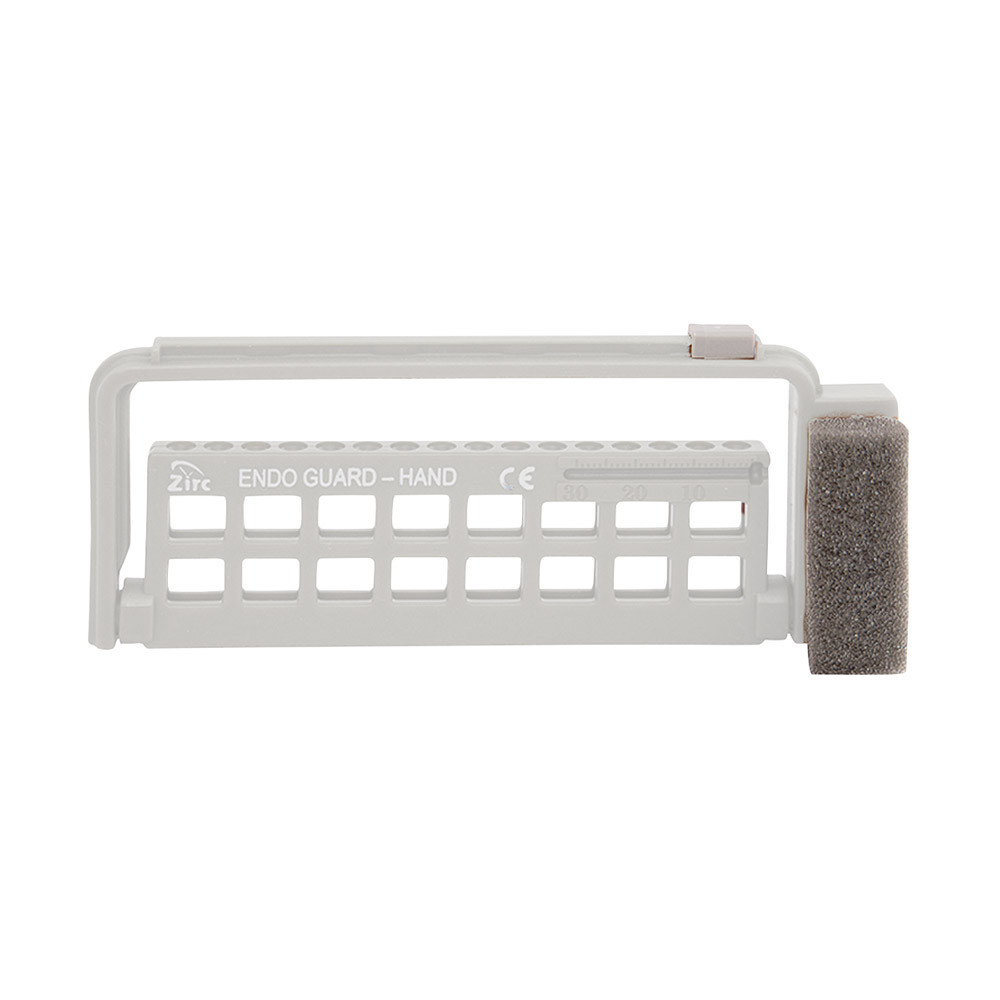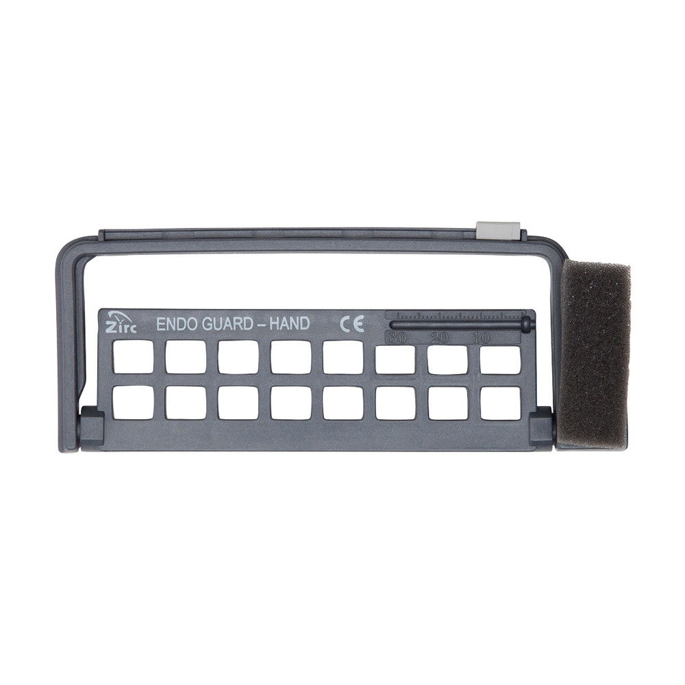 Farbcodierter Endo Organizer für einen kompletten Instrumentensatz (16 Handinstrumente). Durch die Nutzung des Kontroll-Schiebers bei jeder Sterilisation wird eine sichere Kontrolle über den Benutzungsgrad der Instrumente ermöglicht. Dies ist besonders bei Ni-Ti Instrumenten unumgänglich.