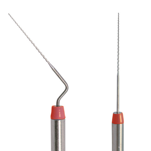 Die Endodontie Spezialinstrumente bieten dem Zahnarzt alle Möglichkeiten von der Wurzelkanalerweiterung bis zur Wurzelfüllung mit Titanstiften. Alle gängigen endodontischen Behandlungsmethoden können einfach und sicher durchgeführt werden. Anwendungsmöglichkeit: Wurzelkanalaufbereitung, Verblend- und Keramiktechnik - Zum Einarbeiten von Fissuren im Occlusalbereich Desinfektion und Sterilisation: Ultraschall, Autoclav mit 135 °C