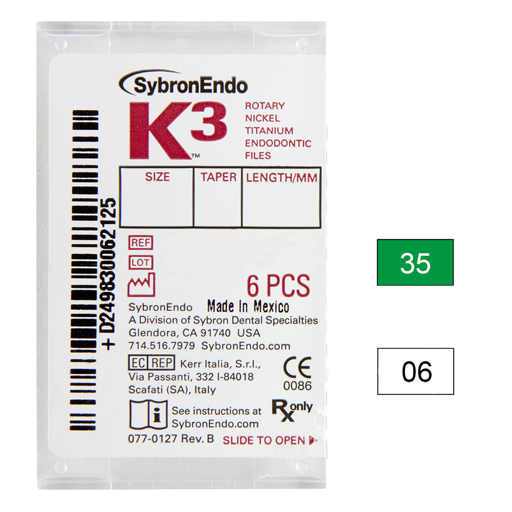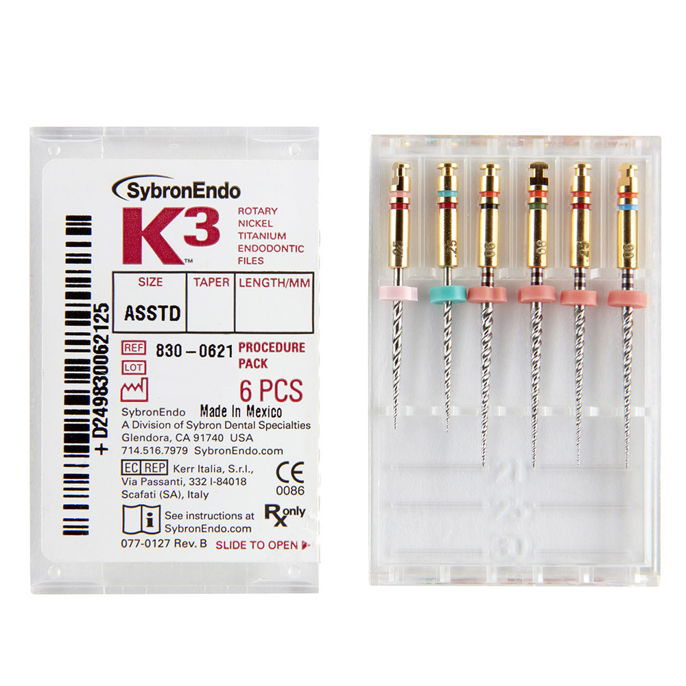 K3, Nickel-Titan-Feilen, ist ein asymmetrisches, endodontisches Feilensystem der dritten Generation. Entwickelt, um schnell, effizient und sicher Debris zu entfernen. K3 bewältigt technische und verfahrensabhängige Probleme wie keine andere geschliffene Feile. Die K3 Feile hat unterschiedliche Schneidewinkel, wodurch Debris effektiv in Richtung koronal transportiert wird. Dies ist nicht nur bei der anfänglichen Reinigung und Aufbereitung wichtig, sondern auch bei Revisionen.