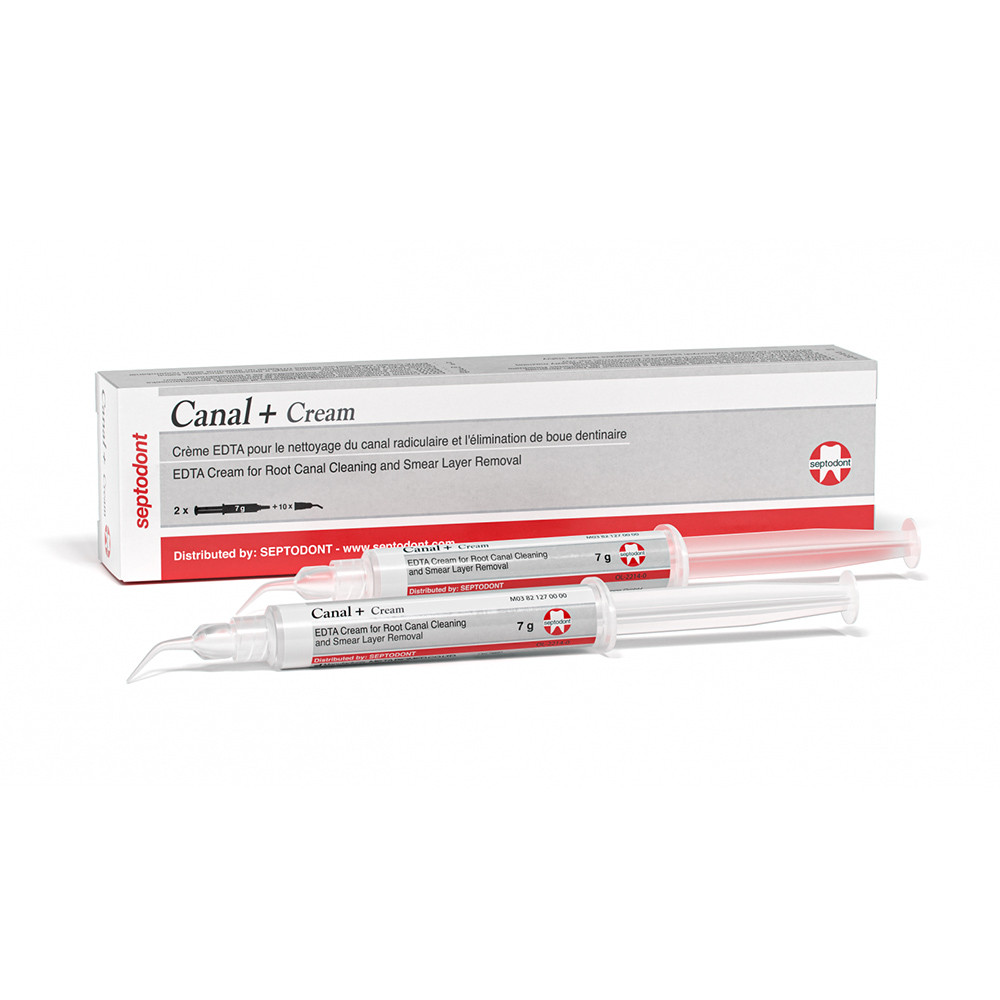 Canal Plus Cream ist ein EDTA-Gel zur Wurzelkanalaufbereitung und Auflösung von Kalzifikationen, Enge Kanäle im Seitenzahnbereich und Entfernung der Schmierschicht.