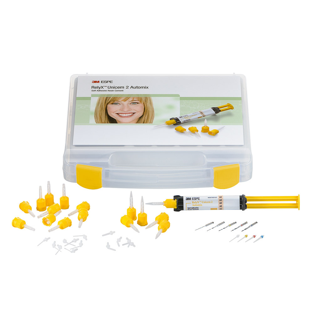 Selbstadhäsiver, dualhärtender, universal Composite-Befestigungszement für die indirekte Restauration aus Vollkeramik, Metall und Composite. Der Selbsthaftungsmechanismus von RelyX Unicem ermöglicht ohne Vorbehandlung sehr gute Haftwerte mit lang anhaltend hoher Randqualität. Eine brillante Kombination für die Endodontie - RelyX Unicem 2 Automix und RelyX Fiber Post • Feiner Endo-Tip auf Mischkanüle der Automix-Spritze ermöglicht direktes Einbringen in den Wurzelkanal Darüberhinaus bieten RelyX Fiber Posts: • Hervorragende Transluzenz und weiter verbesserte Röntgenopazität • Dentinähnliche Elastizität und hervorragende mechanische Festigkeit
