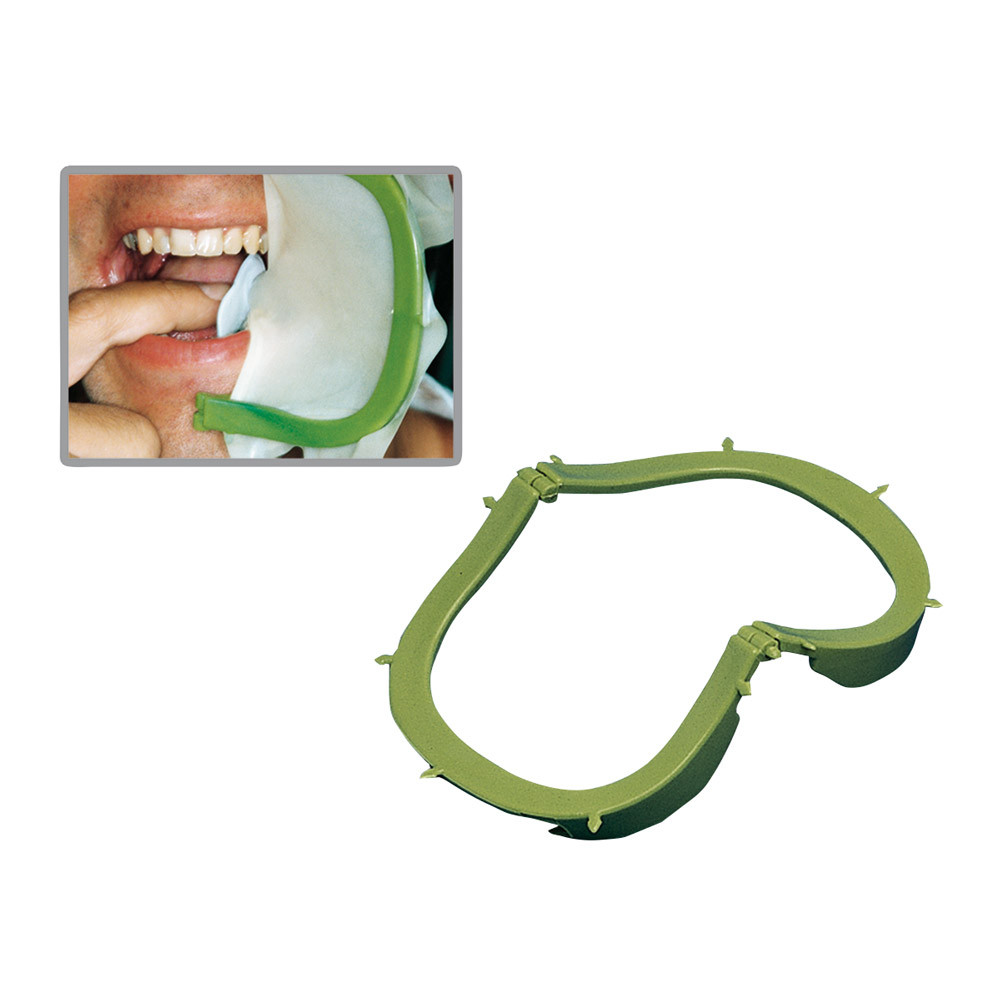 Klappbarer Kunststoffrahmen (autoklavierbar). In der Mitte aufklappbar, erleichterter Zugang. Vermeidet Reflektionen bei Kontrollröntgenaufnahmen, ideal für die Endodontie.