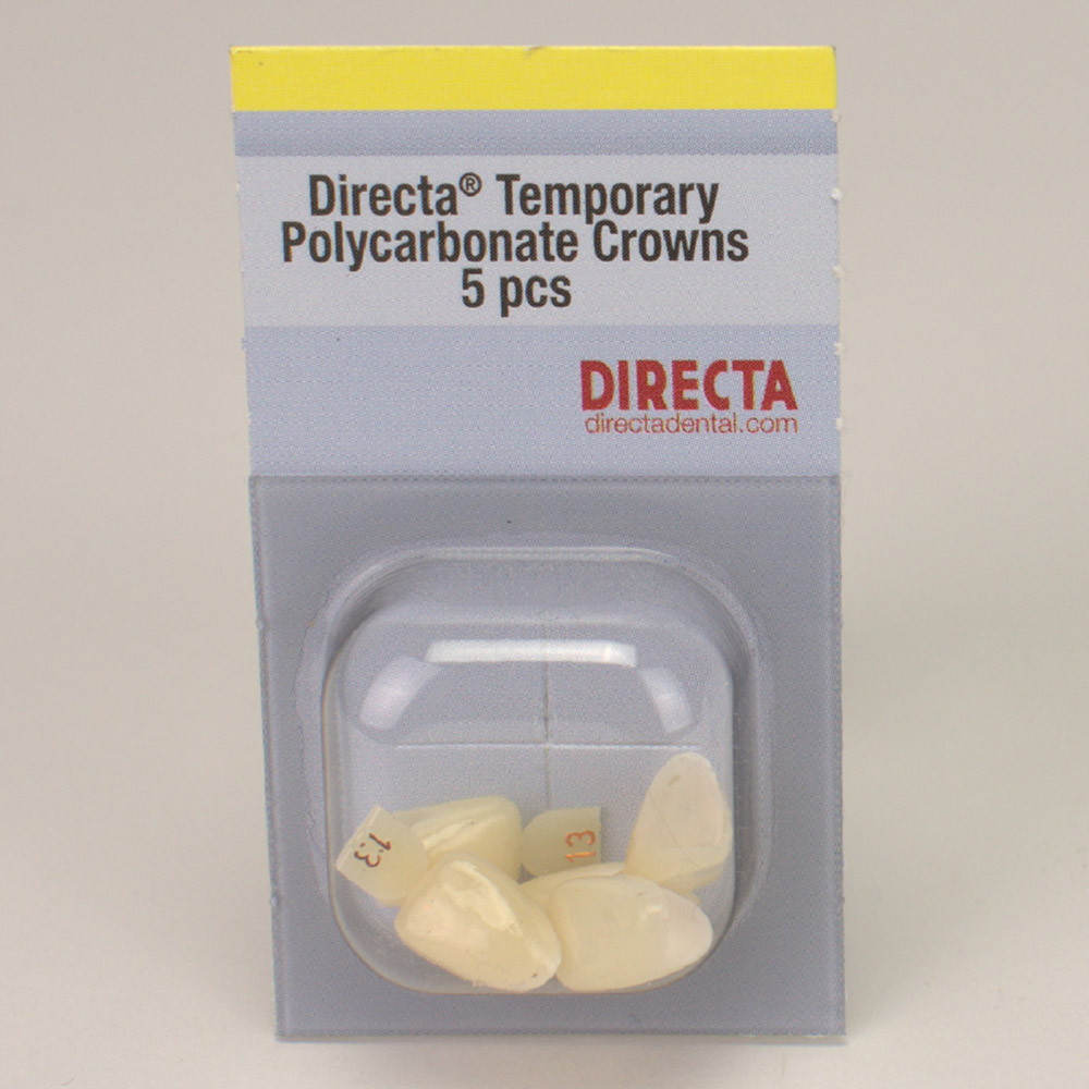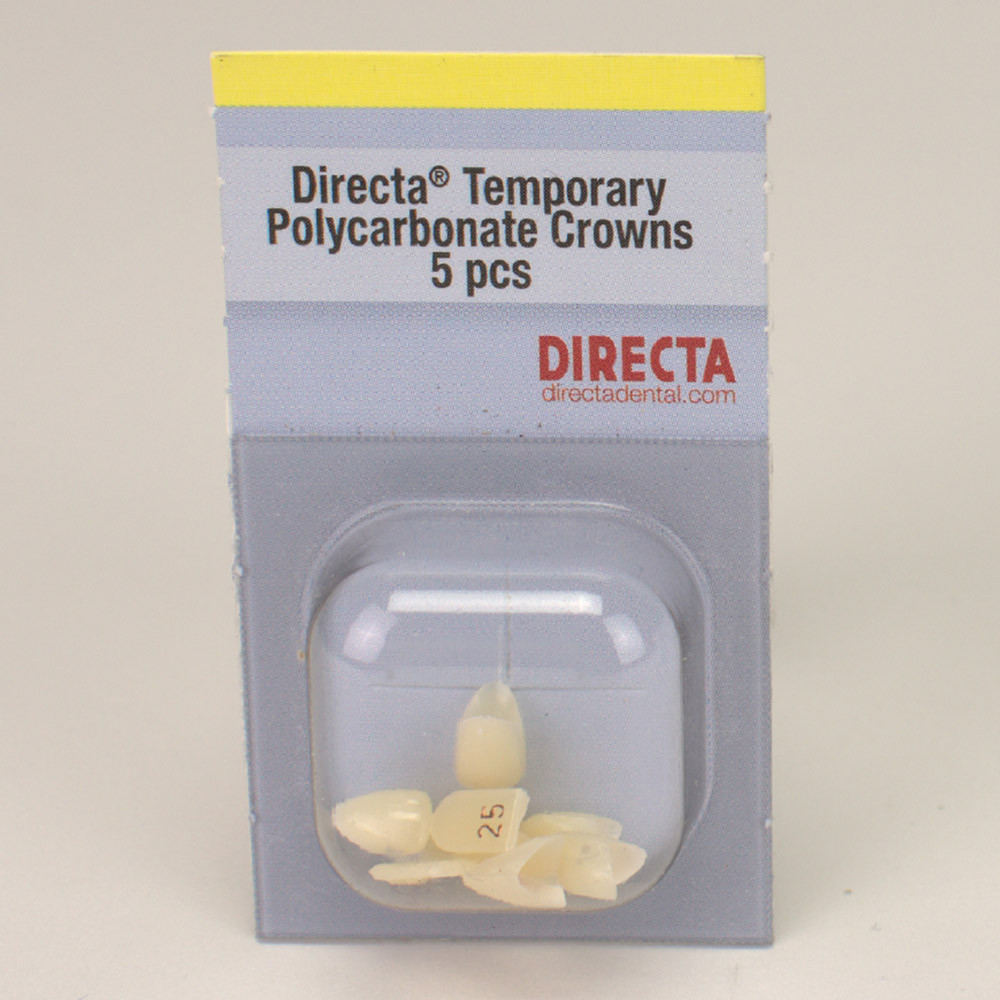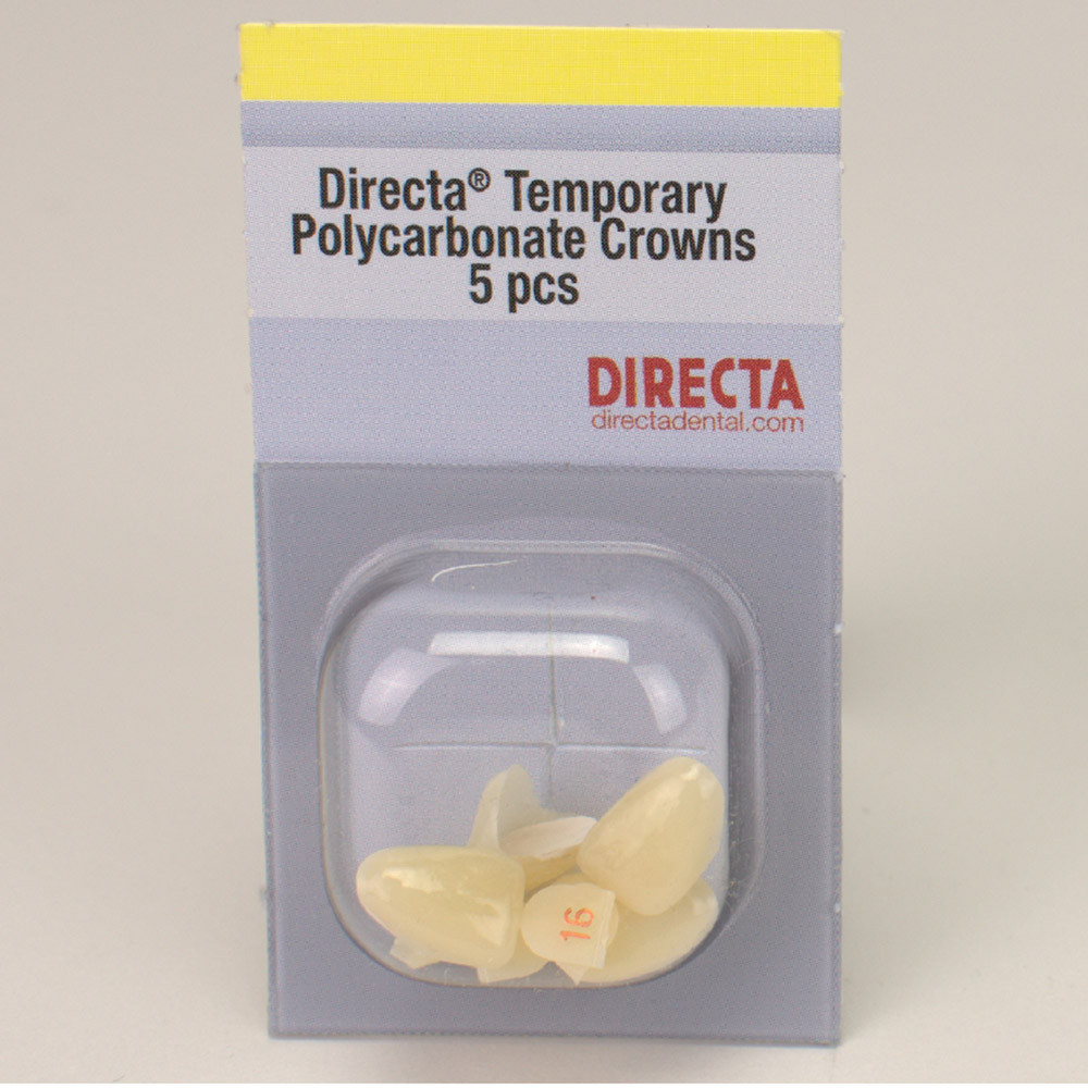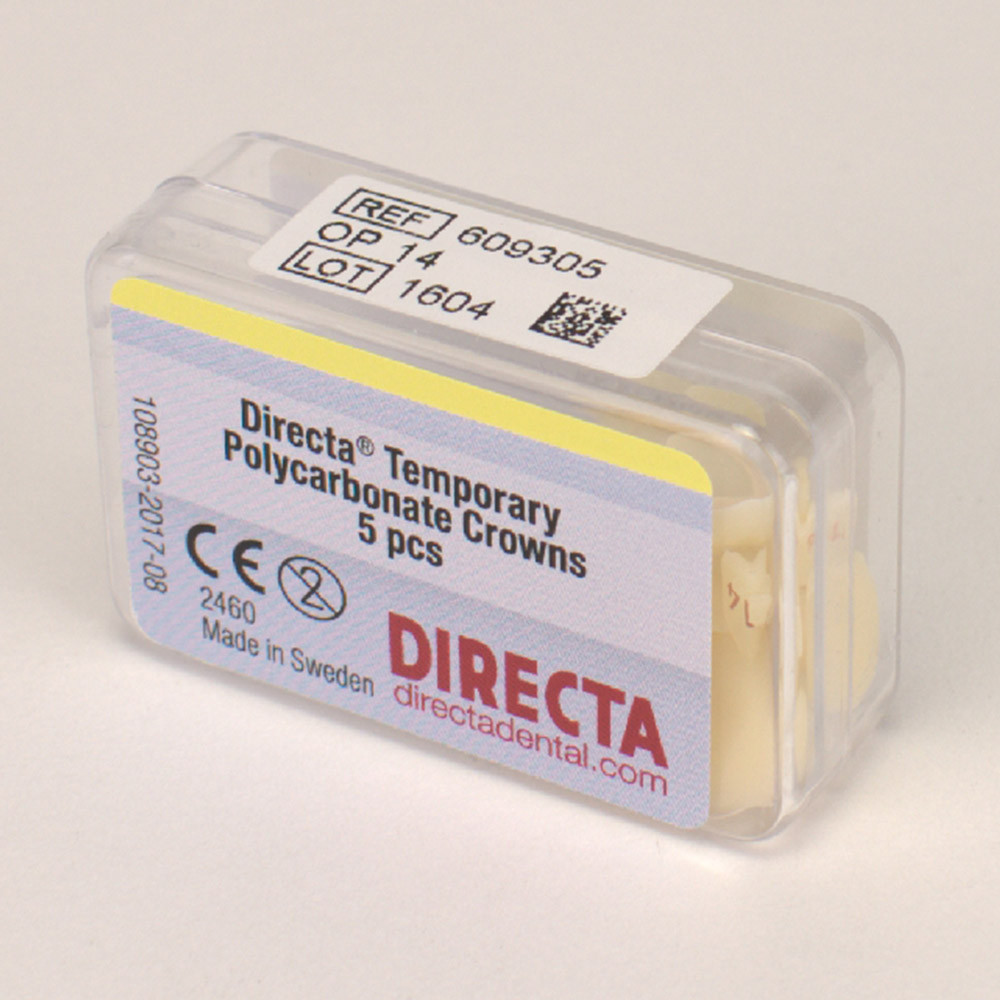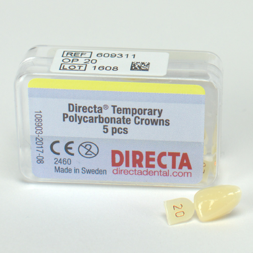 Temporärkronen aus Polycarbonat, einem harten, biokompatiblen Material, wiederstandsfähig im Mund, ermöglicht ein risikofreies Einschleifen ohne Bruchgefahr. Die einzigartige Directa Formleiste ermöglicht einfache Handhabung, Selektierung und Entnahme auch bei sehr kleinen Kronen.